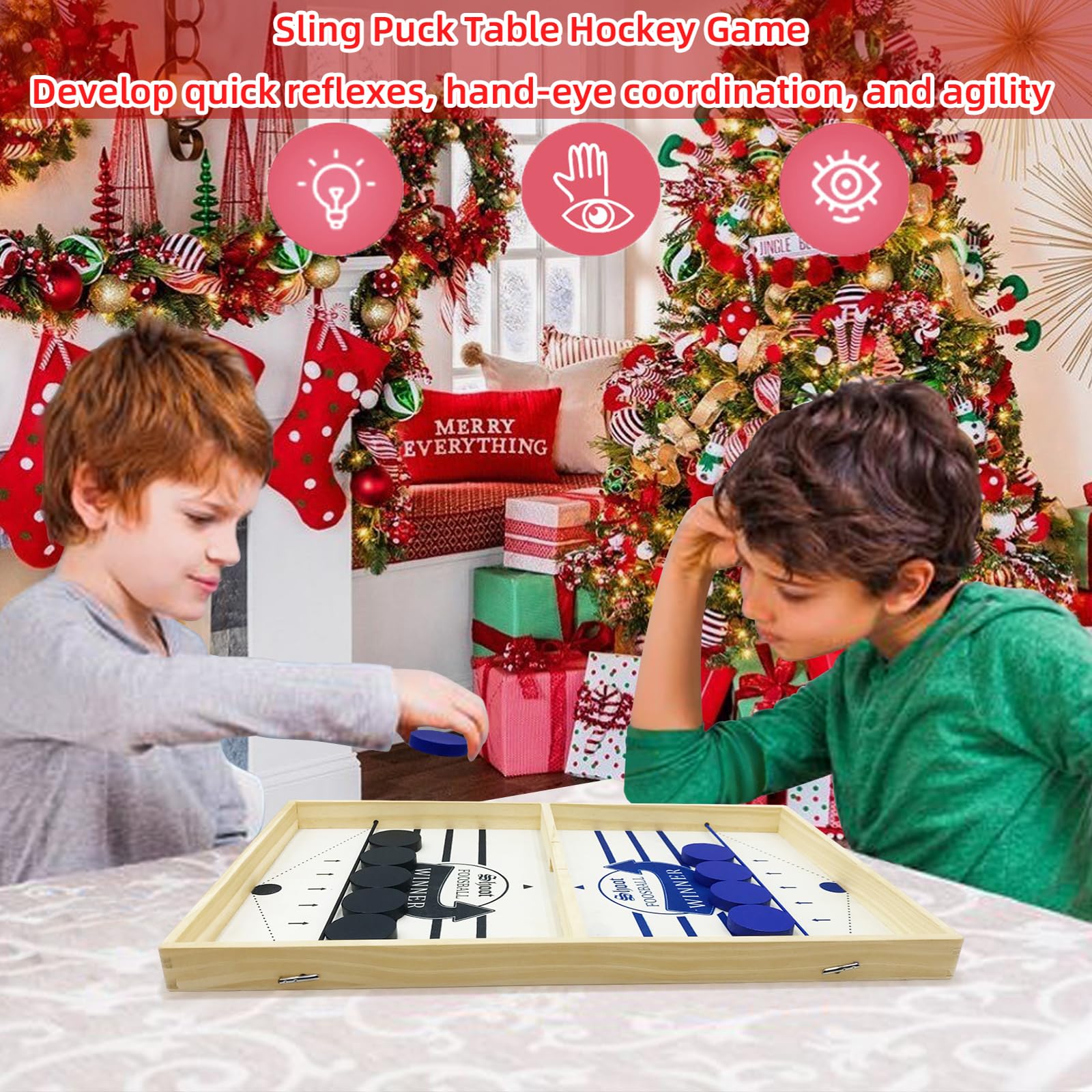Fast Sling Puck Game, Puck Sling Game, Slingshot Table Hockey Wooden Puck Board Game for Kids and Adults Family Game Nights-Xmas Gifts
