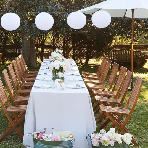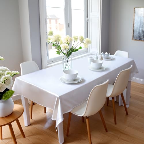 - The package will include 6 piece tablecloth measuring 58*84 inch White tablecloth. Fade-proof and tear-proof, they make an ideal choice for indoor and outdoor dining tables, arts and crafts with kids or DIY projects!