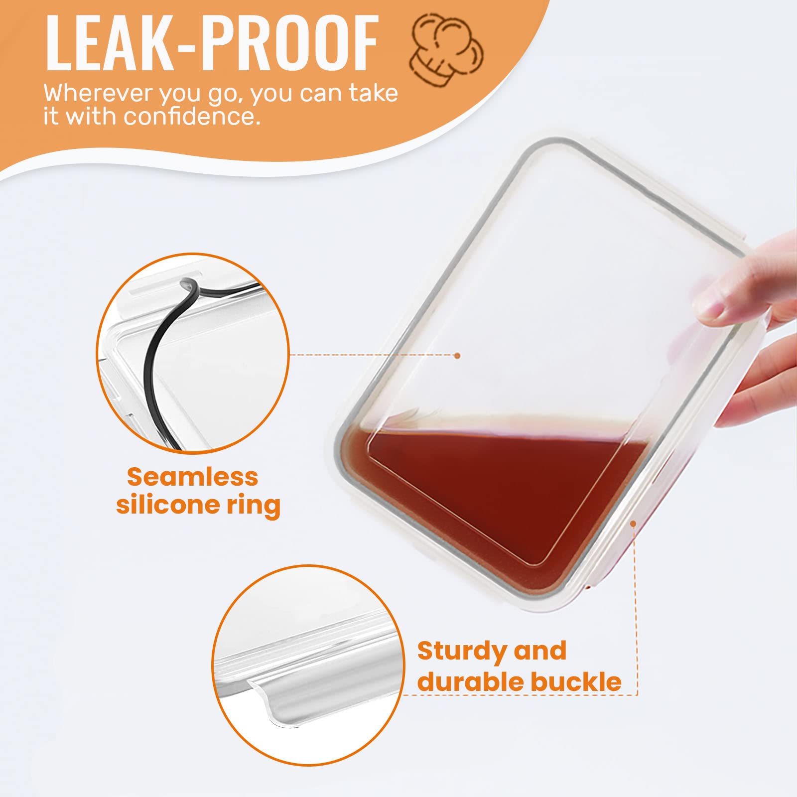 - Various shapes and sizes - 18 pieces airtight food storage containers. Rectangular container:1X2.5L(845OZ),3X1L(34OZ),3X0.5L(19OZ),4X0.24L(8oz),Round container:5X0.04L(1.4OZ),2X0.53L(18OZ).