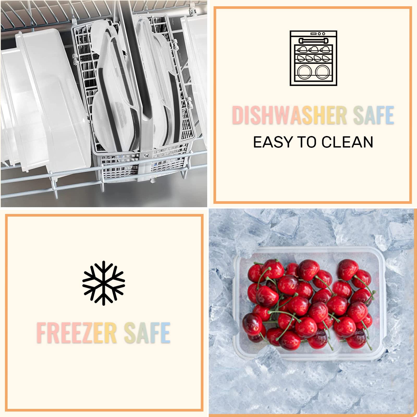- Superior airtightness: Food-grade silicone rings are used to protect your food from insects and moisture, giving it a longer shelf life. Food is stored separately in airtight containers, so say goodbye to odors.
