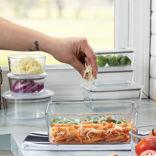 FineDine 20-Piece Glass Food Storage Container Set - 100% Leakproof, BPA-Free, and Oven Safe - Perfect for Meal Prep and On-the-Go (Grey)