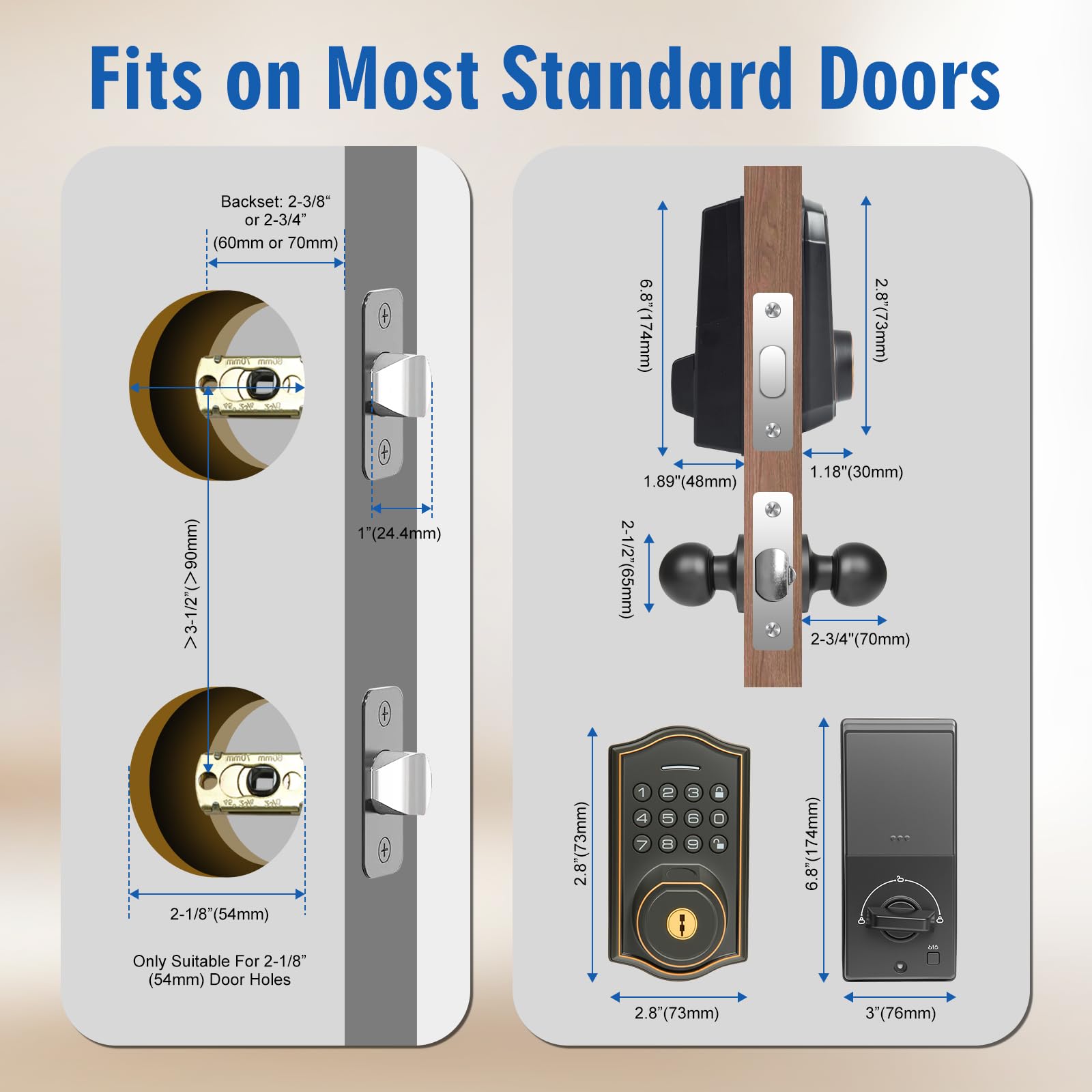 - [Advanced Fingerprint Technology]: This fingerprint door lock adopts advanced biometric fingerprint sensor, which improves the accuracy and sensitivity of fingerprint recognition, only 0.3 seconds to recognize fingerprints, 1 second to unlock the door easily