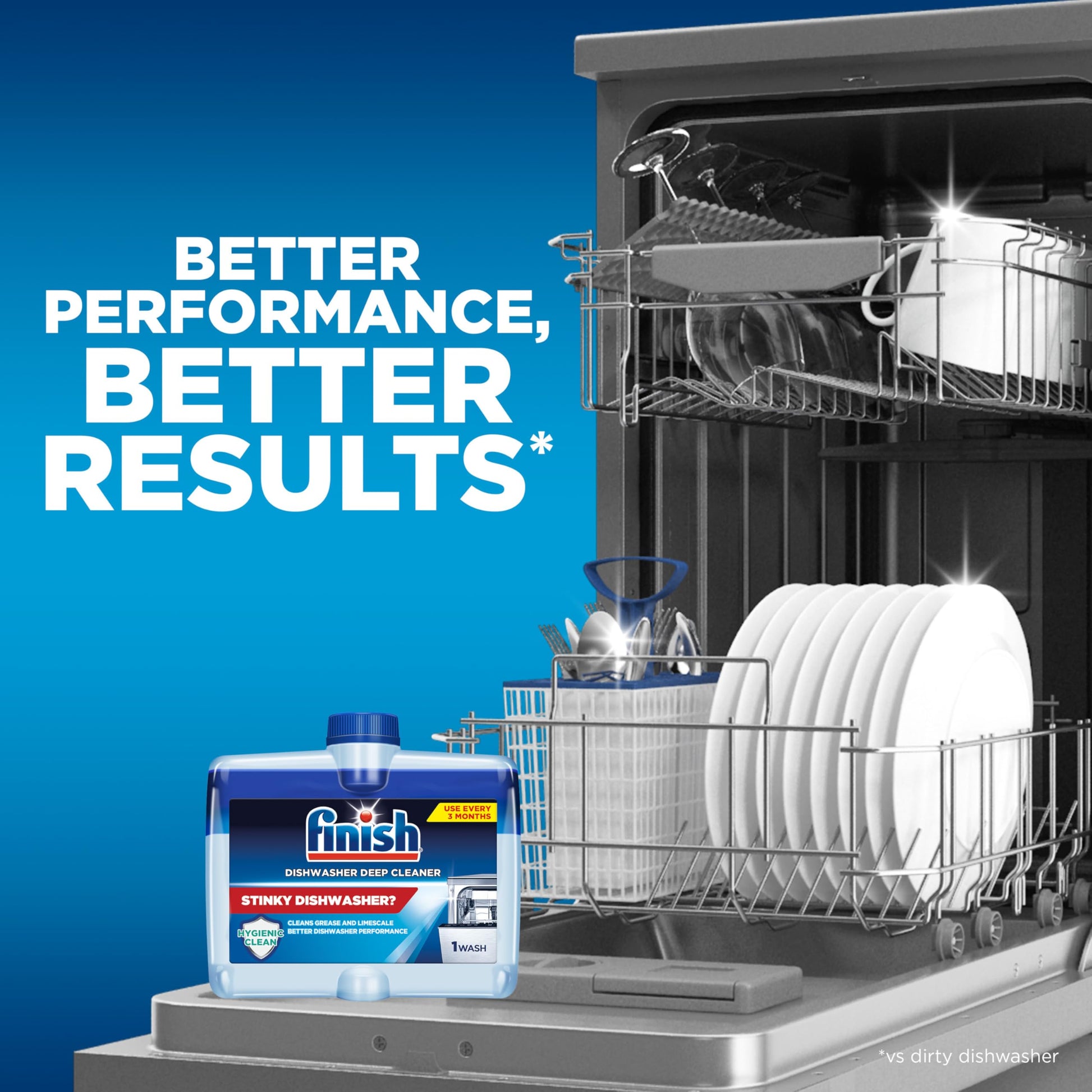 - Disclaimer: *vs. dirty dishwasher. vs. Finish Dishwasher Cleaner Tablets