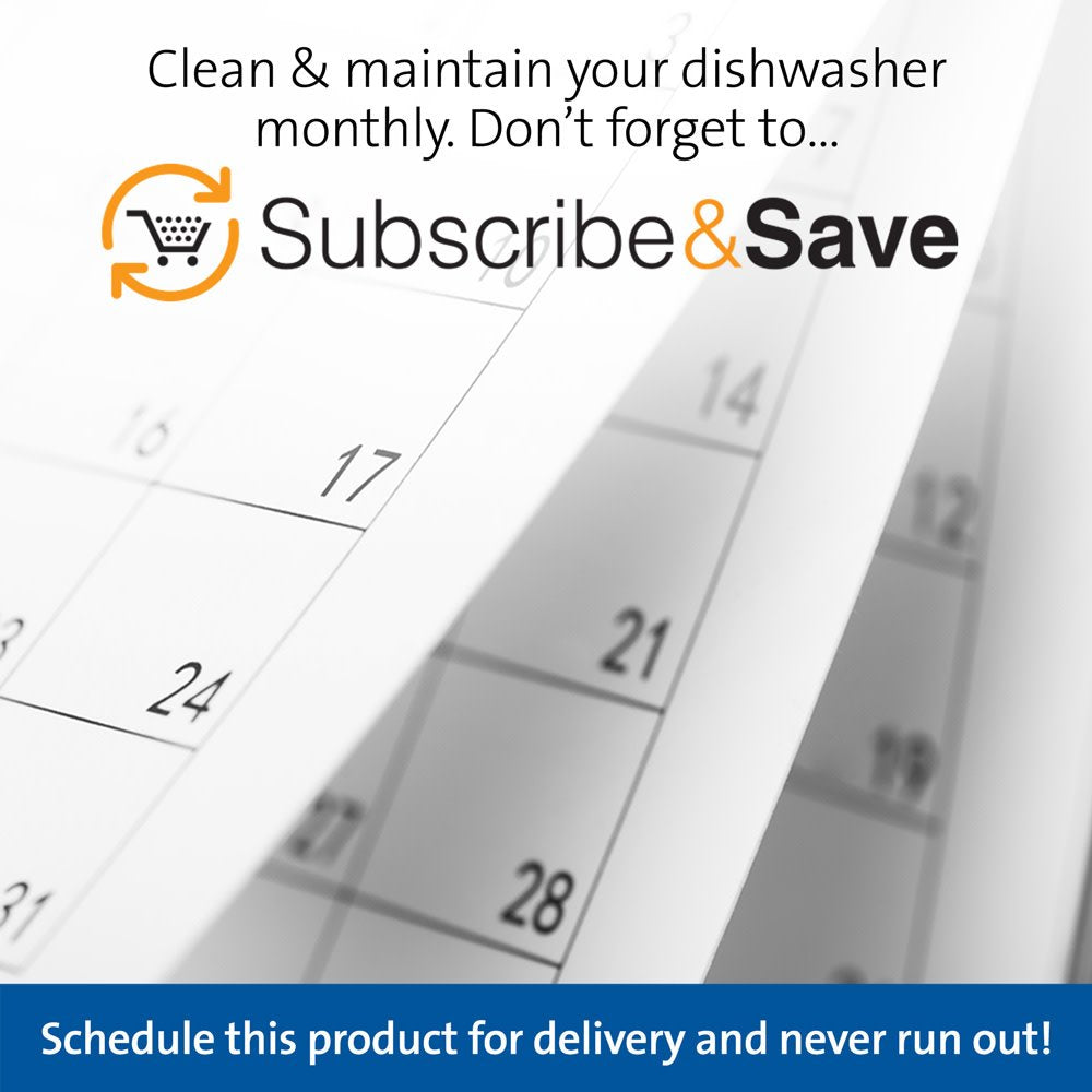 - Breaks down and removes lime scale and grease build-up inside your dishwasher