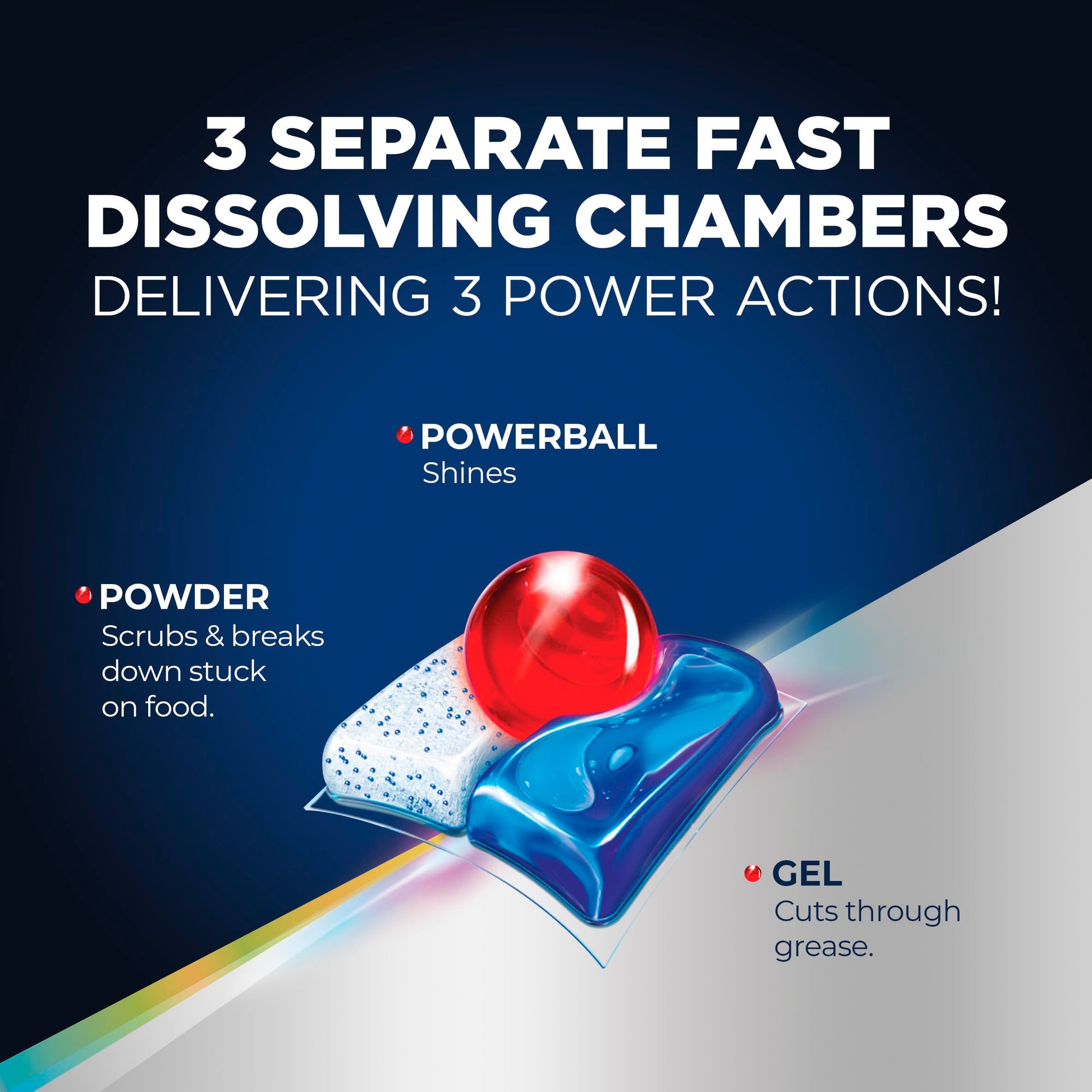 Details: Finish Quantum dishwasher detergent tackles whatever you throw at it. Our Powerball supercharges the capsule to tackle the toughest messes the first time for an ultimate clean & shine. Its multi-chamber dishwashing technology activates each of the three dish cleaning ingredients when it's needed during the cycle, so all you have to do is sit back and relax. The Shine & Protect Glass action ensures your glassware maintains a sparkling shine for longer, and the Silver Protection provides added protection for your silverware. Finish Quantum tablets are safe for septic systems. The tablets are easy-to-use, wrapper free & pre-measured to enhance your dishwashing experience.