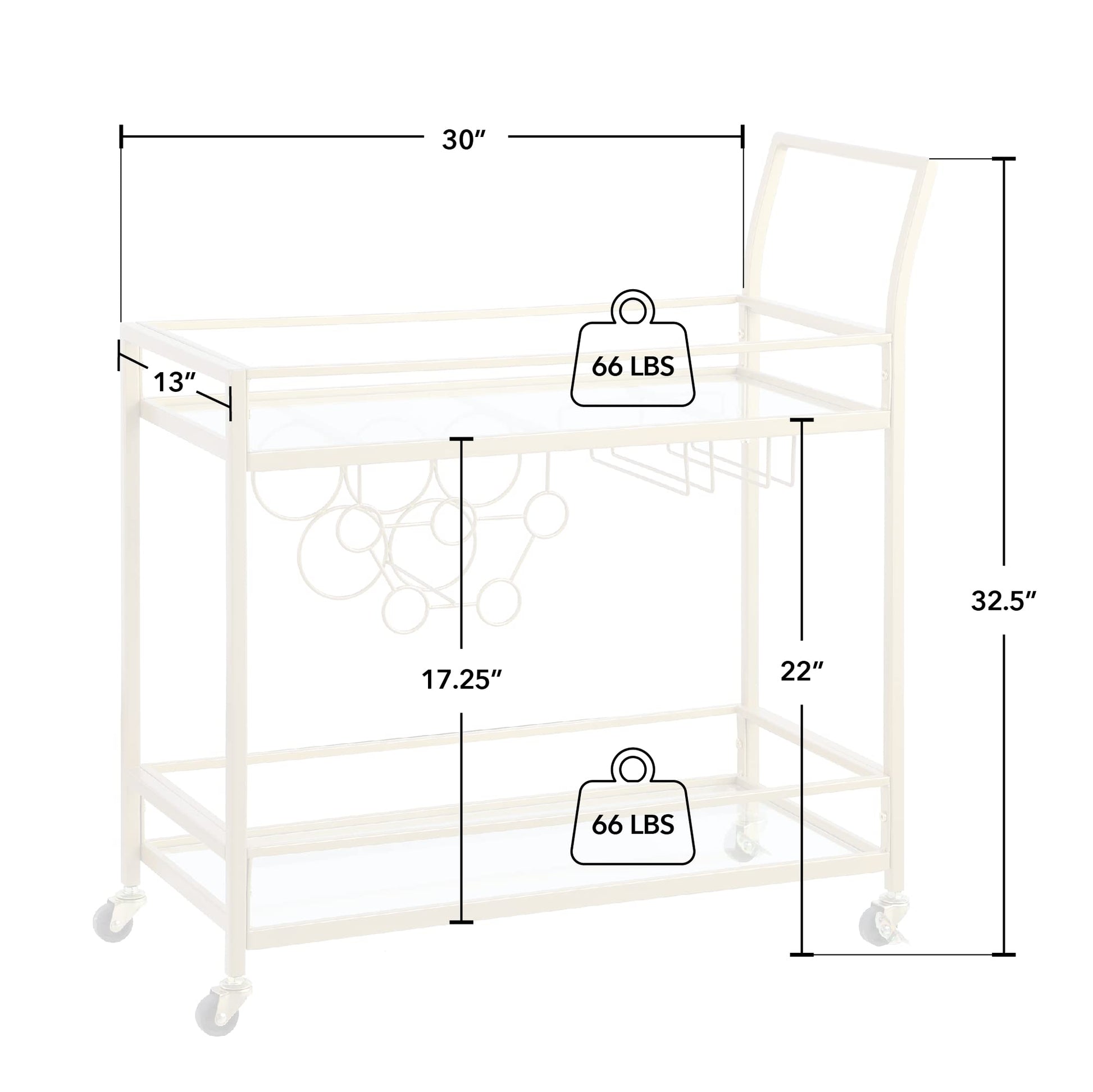 - SIZE MATTERS – Our FirsTime & Co. Gold Francesca Bar Cart has a 32.5” height, 30” length and 13” width, giving you enough room to hold your drinks, wine and snacks as well as making it convenient to place in any small space. The height from the floor to the top shelf is 22"