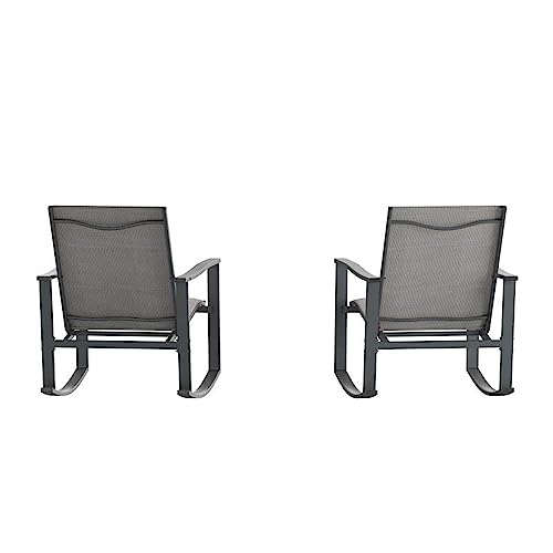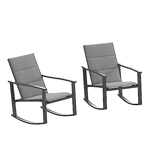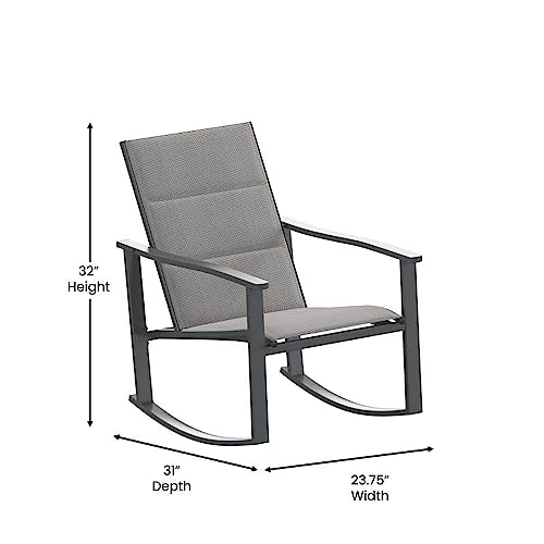 Flash Furniture Brazos Set of 2 Gray Outdoor Rocking Chairs with Flex Comfort Material and Black Metal Frame,Gray/Black