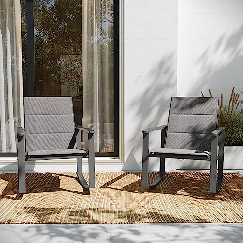 - RELAX IN STYLE: Set of 2 modern ergonomic rocking chairs with angled backs and armrests for total comfort
