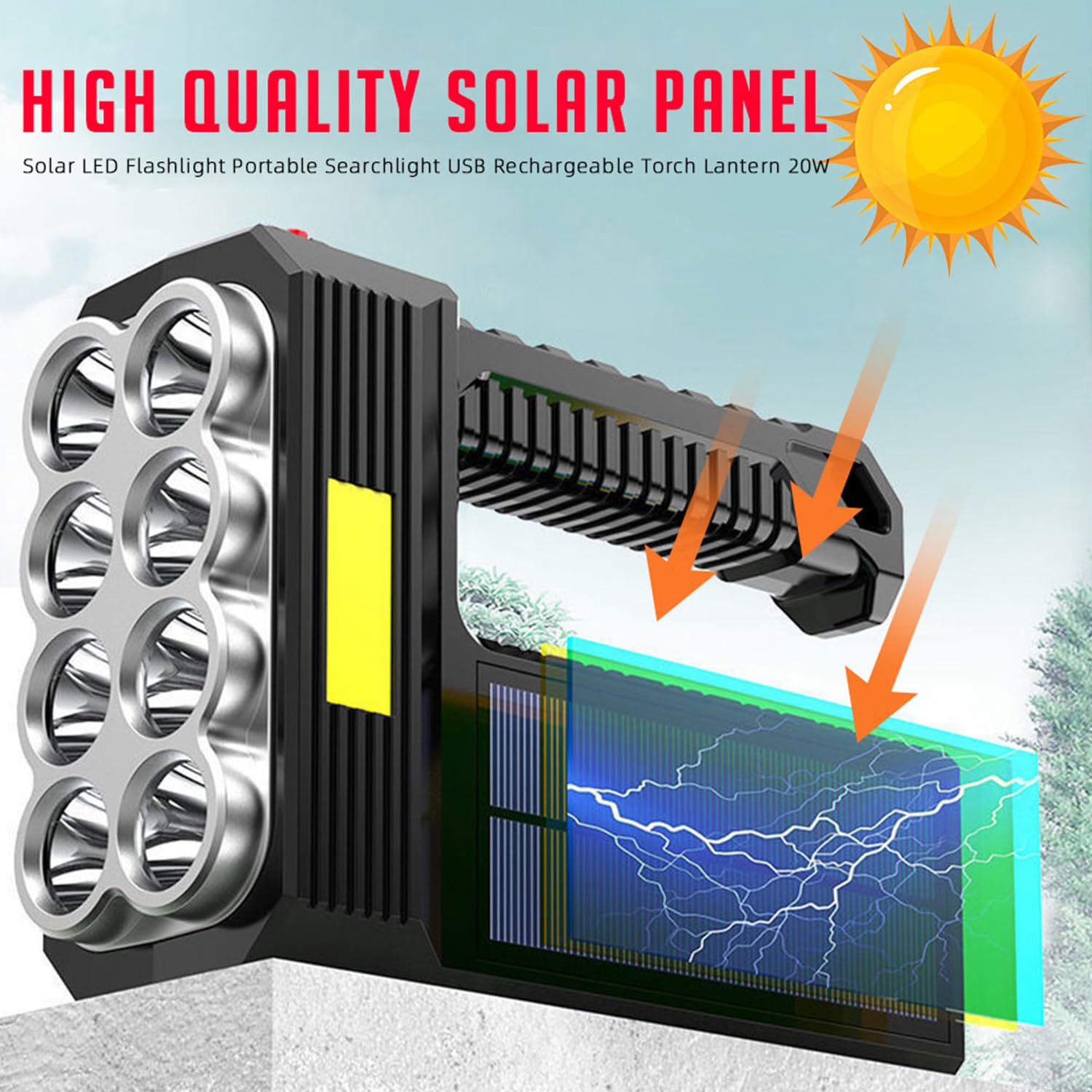 - 🔦SOLAR CHARGE/USB CHARGE: Solar Charge: Equipped with solar panels, as long as there is weak sunlight, it can be quickly charged at any time. USB Charge: There is an Android USB charging port on the side of the flashlight, which can be connected to a computer, car and power outlet.