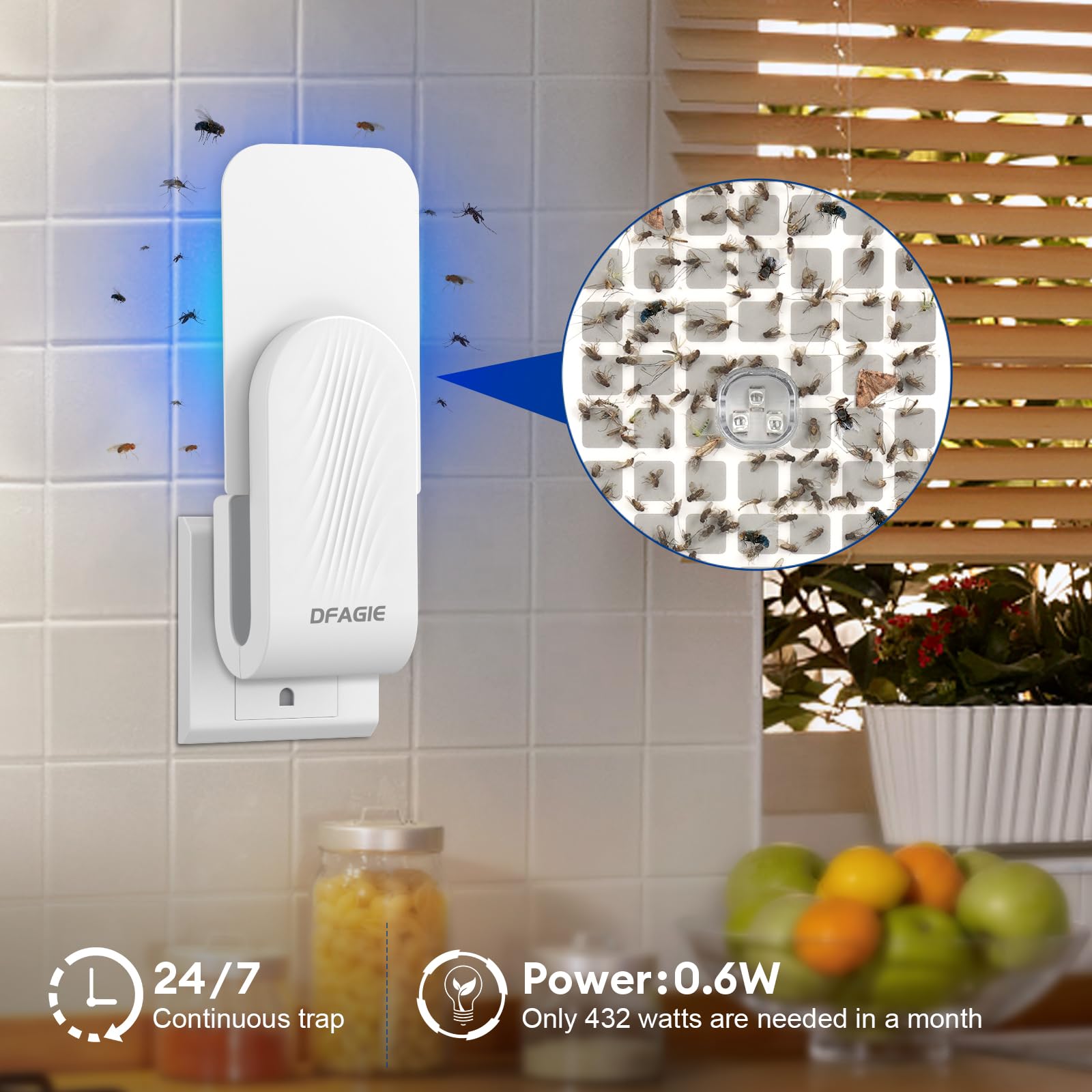- 【MULTIFUNCTIONAL FLY TRAP】 DFAGIE flying insect trap blue-violet light and glue card can effectively attract and catch fruit flies, gnats, mosquitoes and other small bugs, creating a pest-free environment for you. The soft light will not affect your rest even at night.