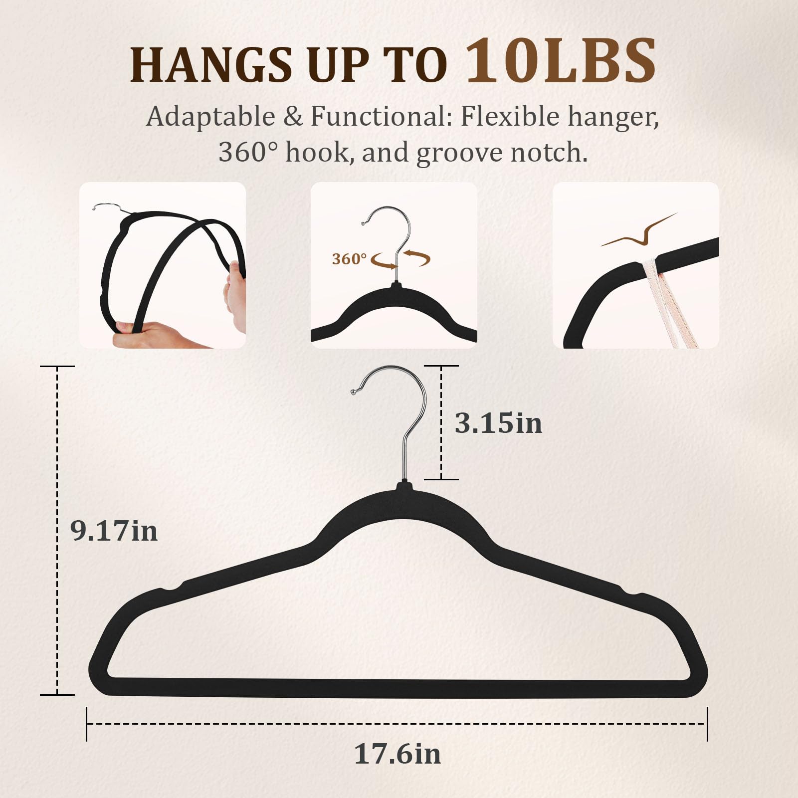 - Luxurious Velvet Finish: Elevate your closet with our premium black velvet flocked hangers. These clothes hangers offer a stylish, velvet-coated surface that prevents slipping, making them ideal for shirts, dresses, and coats. Enjoy closet hangers that combine elegance with practicality while protecting your clothes from snags and wrinkles.