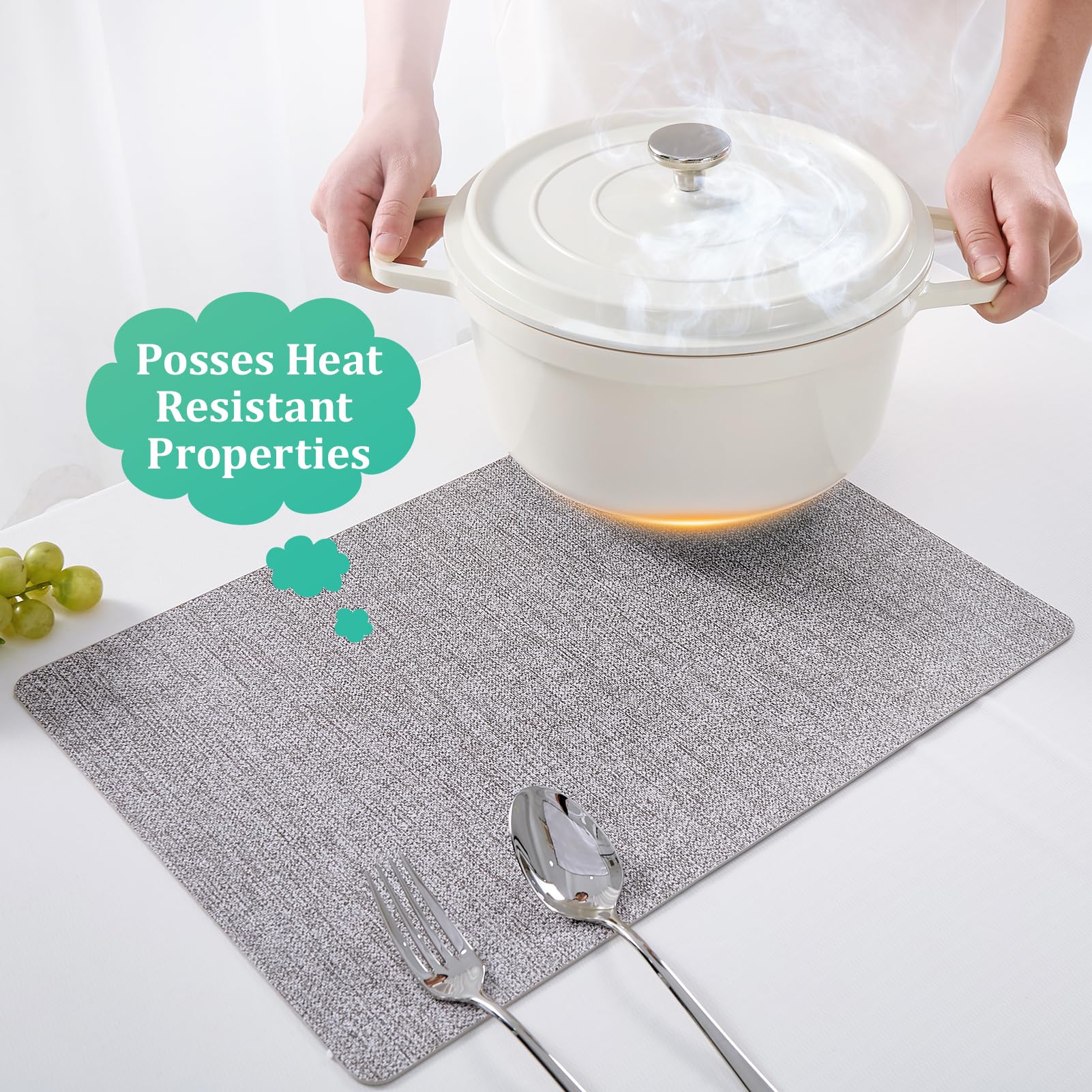 - Heat Resistant: These premium dining table placemats feature a 2mm thickness to effectively protect your table from unsightly heat marks. Each mat is coated with a durable layer, ensuring a flawless dining experience every time