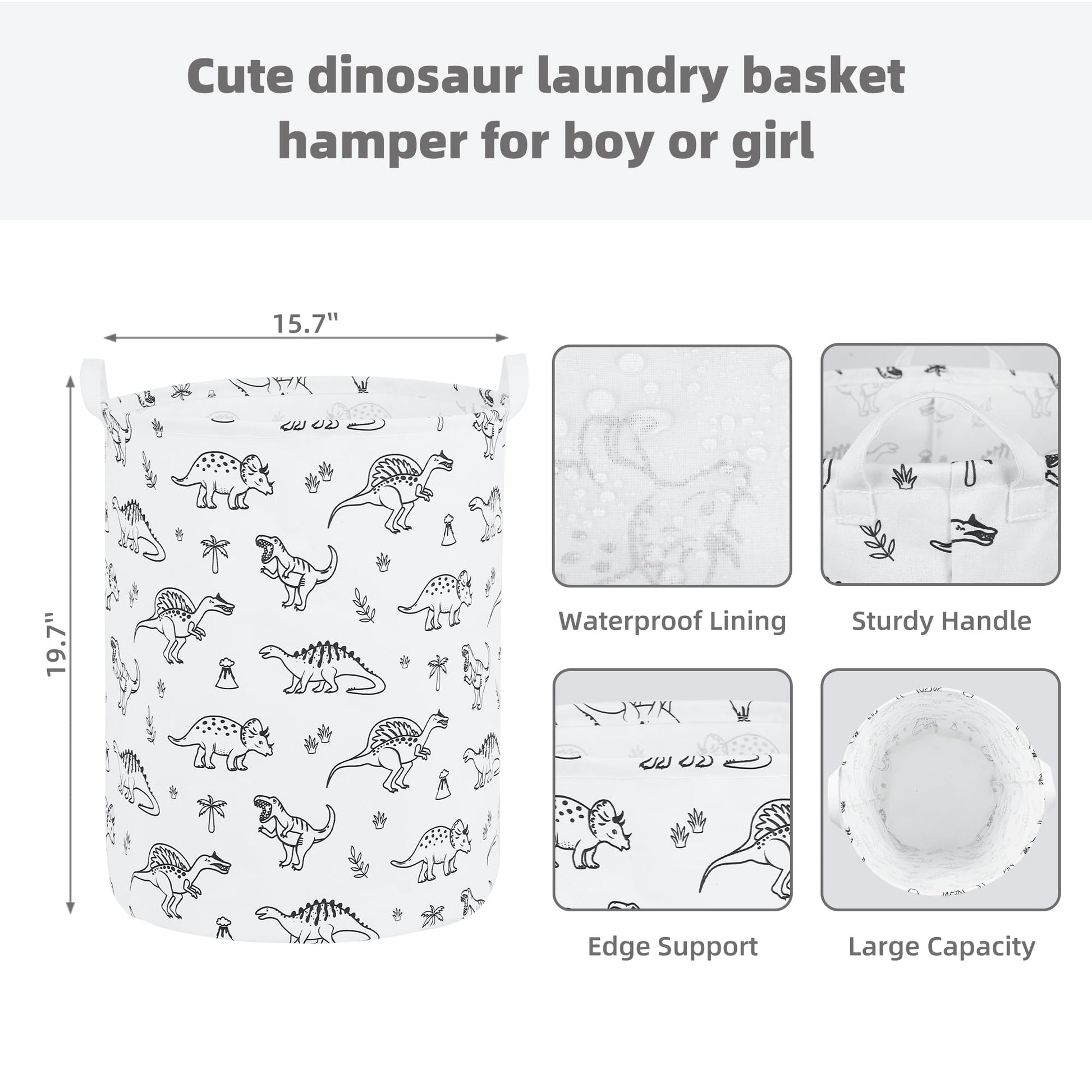 Foldable Baby Laundry Basket Hamper for Nursery Girl Boy kids Clothes laundry hamper basket Portable Tall Collapsible Cute Laundry Basket Organizer, Nursery Storage Basket with Handles (Dinosaurs)