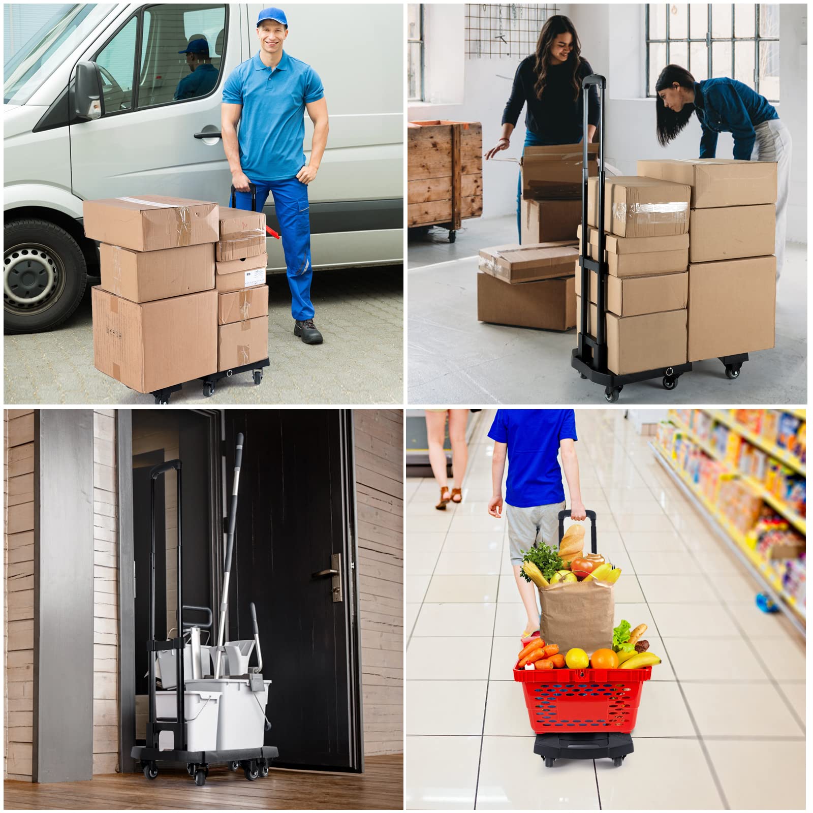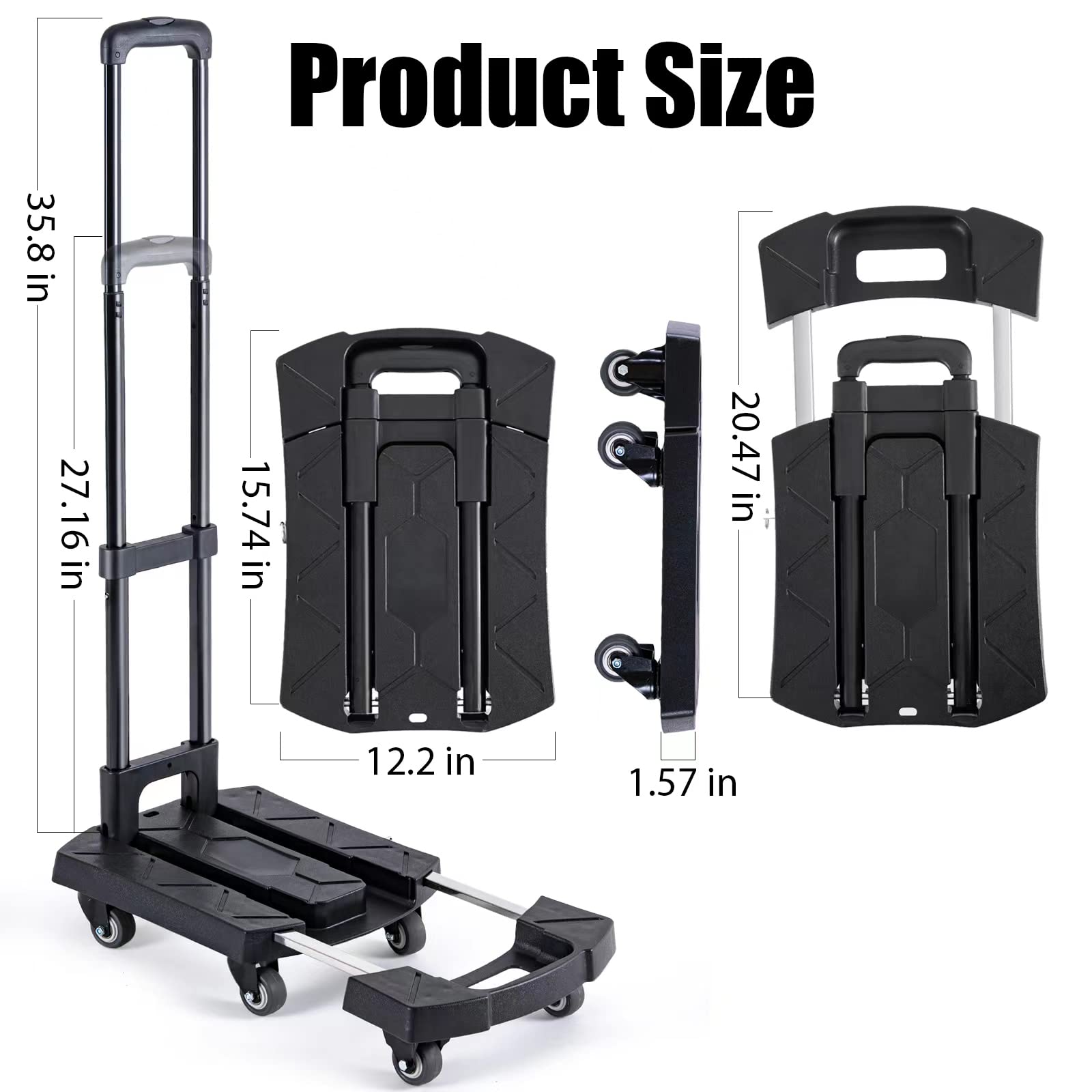 - Easy Storage: Our dolly folding and stretchable design, not only save space , but also bring you endless convenience, there is no problem maneuvering it and safely bringing in boxes,luggage etc.