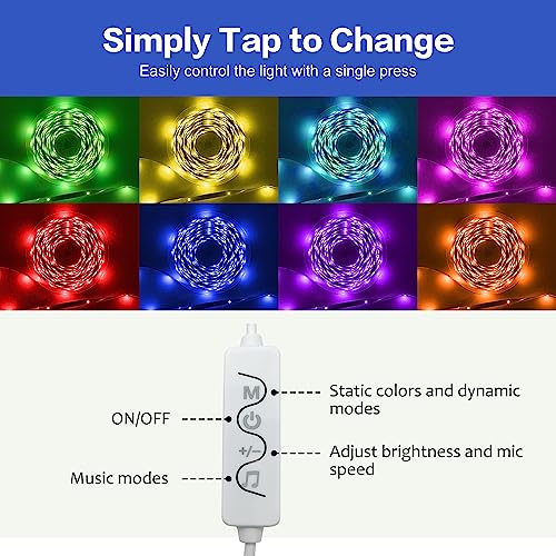 - 【Cool Music Sync with the lights】The Led Strip lights has a built-in sensitive microphone, allowing the led lights changing colors according to the rhythm of your favorite musics or surrouding sound, and creating romance, relaxation, gorgeous and interesting atmosphere for your party.