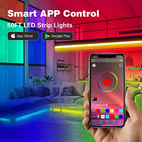 FONEWE 50ft Led Lights for Bedroom Led Strip Lights Led Light Strip with App Led Lights for Home Decoration