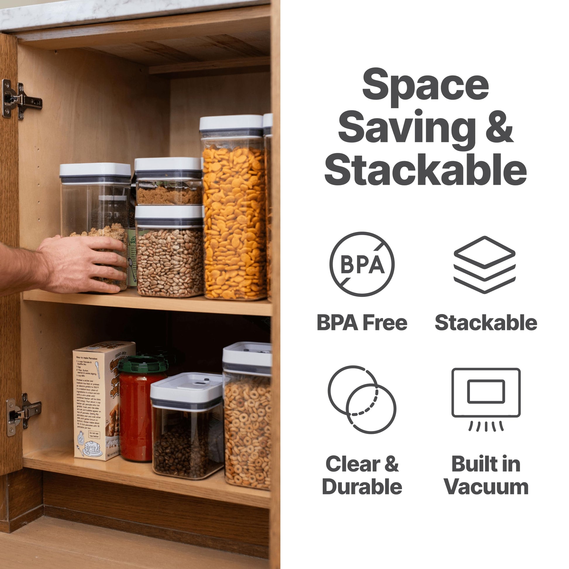 - KEEP FOOD FRESHER LONGER: Fontaines Pump-Lock Container Set allows you to pump out all of the air inside the container creating an airtight, vacuum seal that allows you to store items 5x longer than non-vacuum storage. Fresh food, pantry organized.