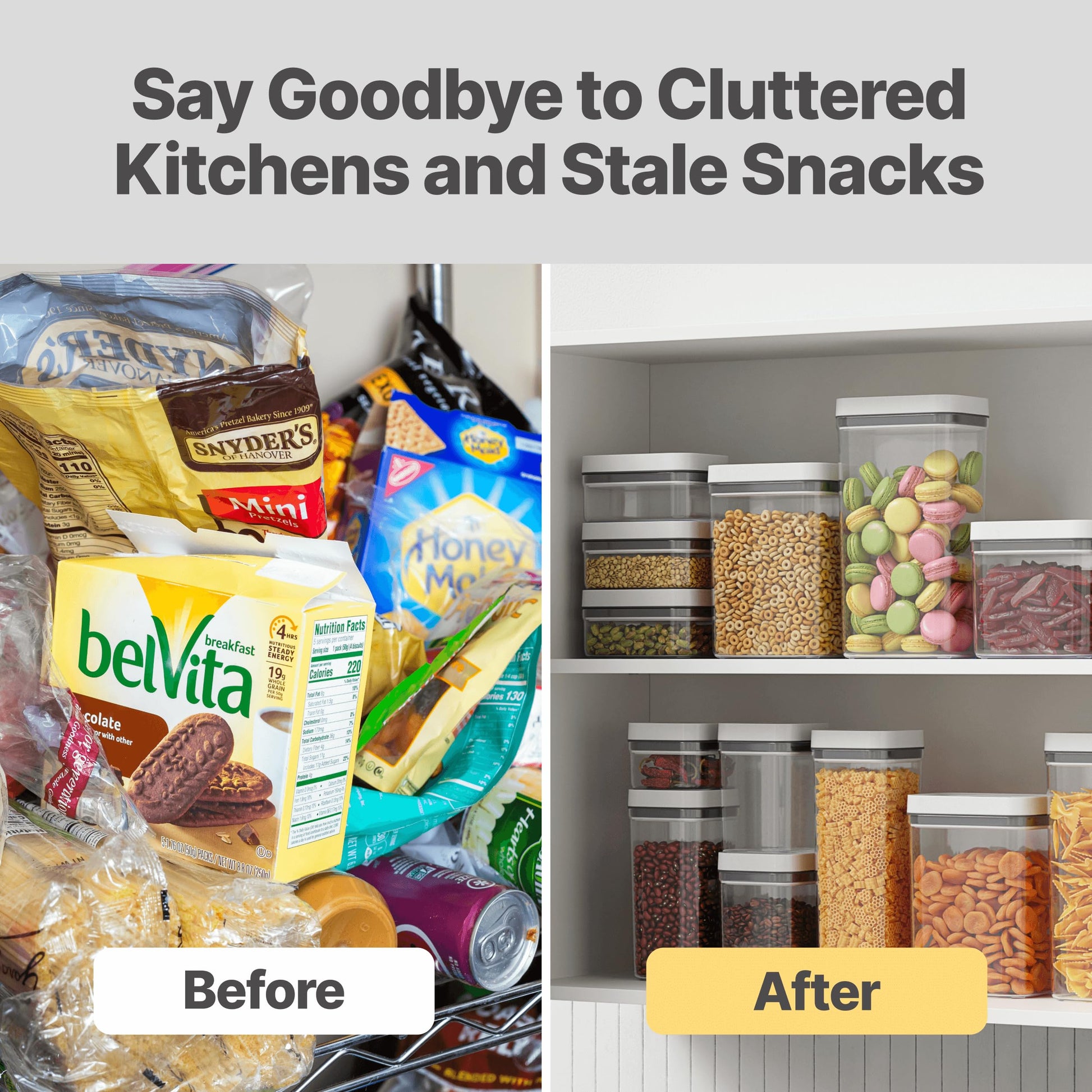 - ULTIMATE KITCHEN ORGANIZERS: With clear storage, you'll know exactly what you have. Store pantry staples like cereal, flour, sugar, pasta, rice, coffee, nuts and snacks. Save money by knowing exactly what you have, so you don't buy duplicates.