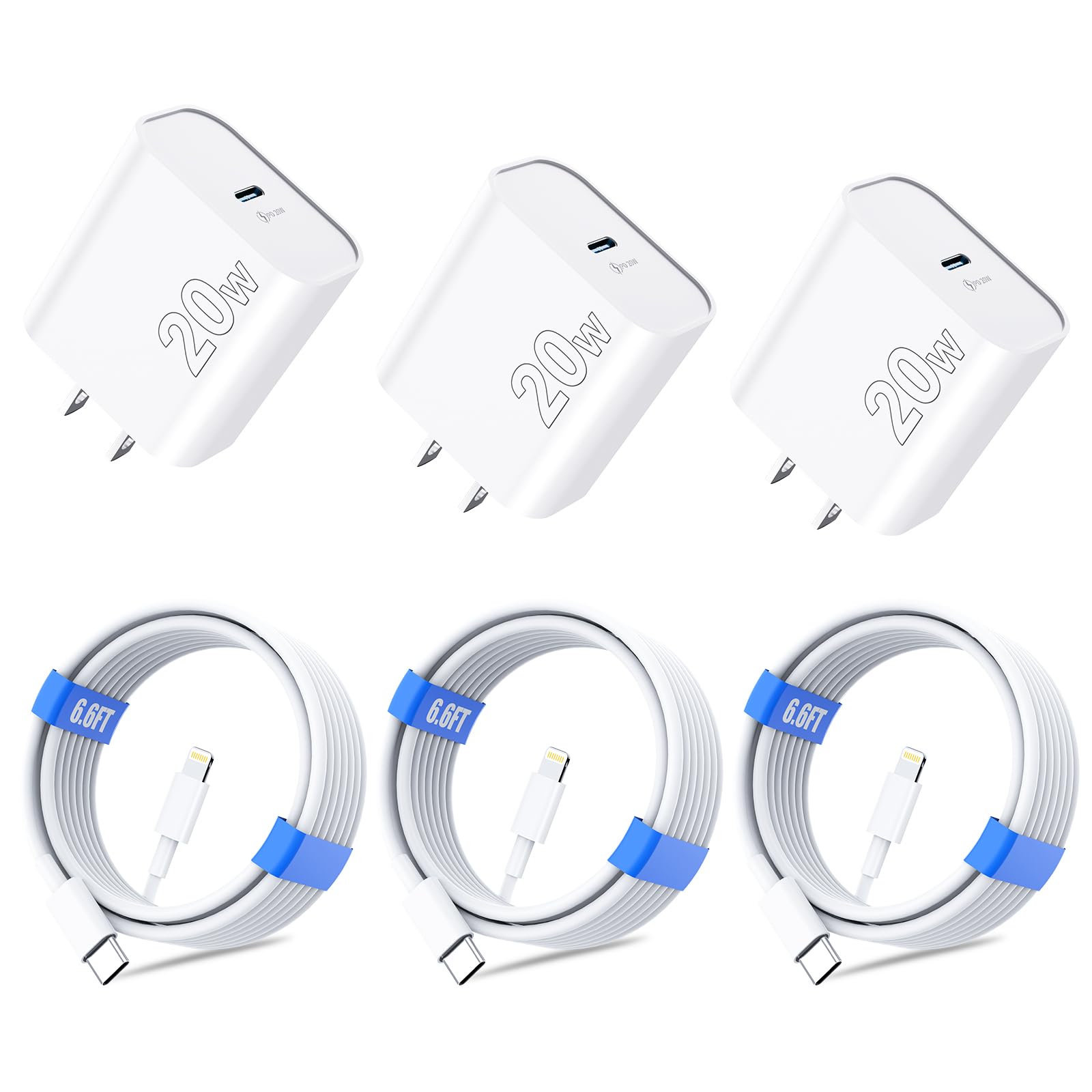 - 【What You Get】 3 pack of 20W USB-C iPhone charger with 6.6FT USB-C to Lightning charging cable are packed in a box,1 year worry-free refund and replacement guarantee. If you have any questions, don't hesitate to contact us! We promise to solve your problems within 24 Hours!