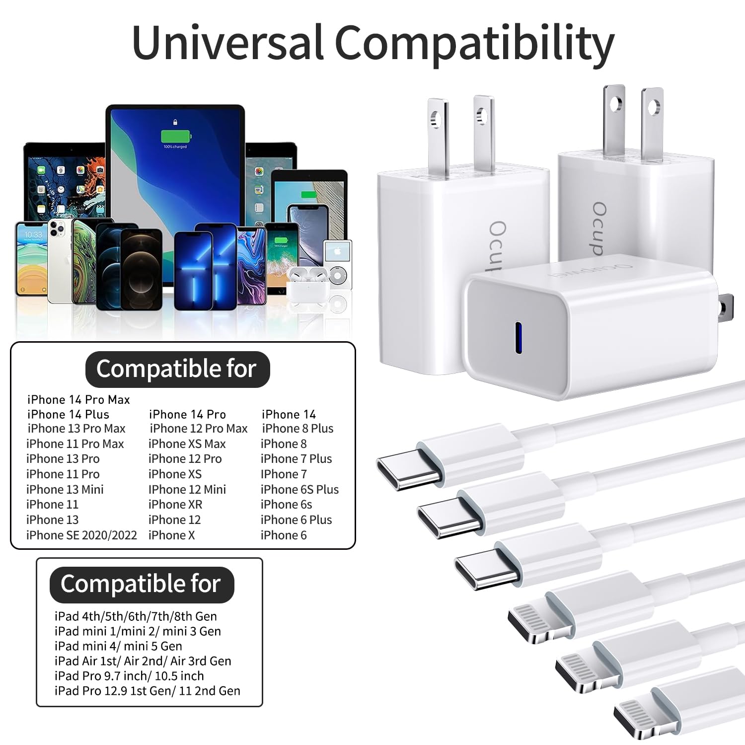 - 【Universal Compatibility】Works With for iPhone 14/14Pro/14Pro Max/ 13/13Pro/13Pro Max 12/12 Mini/12 Pro/12 Pro Max/SE /11/11 Pro/11 Pro Max/XS/XS Max/XR/X 8 Plus, iPad.This 20 USB Wall Fast Charger also charge for iPhone 7 6 Plus, iPhone 5 5c 5s SE in a Original Charging Speed.