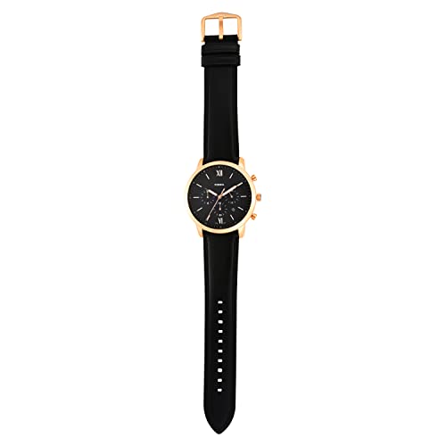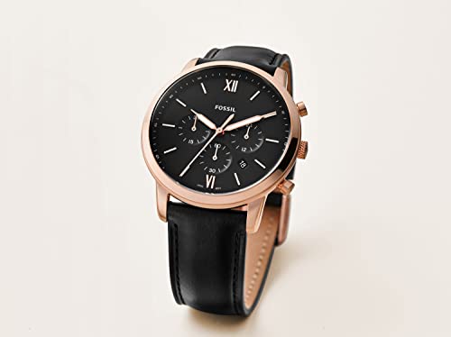 Fossil Men's Neutra Quartz Stainless Steel and Leather Chronograph Watch, Color: Rose Gold, Black (Model: FS5381)