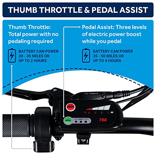 - Efficient and Reliable: Can be operated by pedaling, combination of pedaling and one of the three levels of pedal assist or operated fully electric via the use of the thumb throttle. Maximum speed of 20mph.
