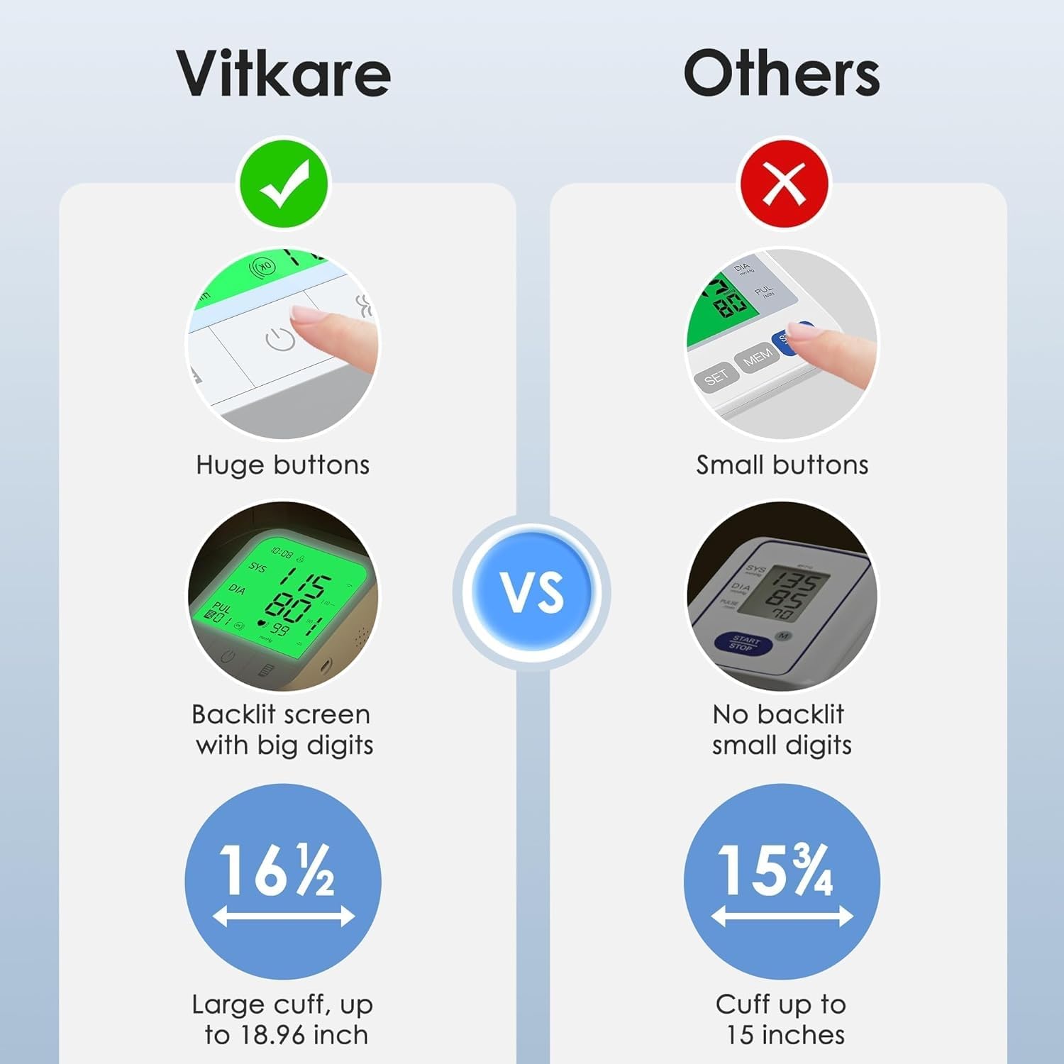- Powerful memory function: This blood pressure monitor stores 99 sets of memories for two users. After each measurement, the display automatically stores the measurement data. When the memory is full, the old measurement data will be filled with new data.Help measure your blood pressure easier and effectively in your home and track your health by keeping recordings.