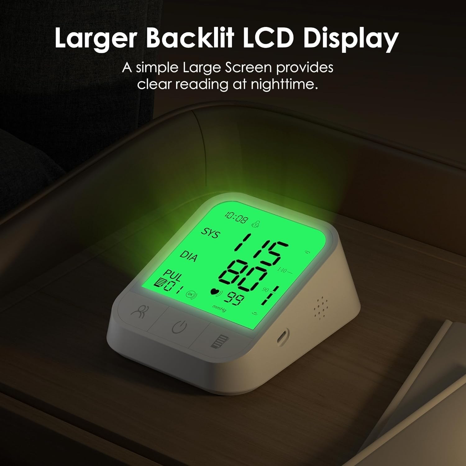- Color display: This blood pressure monitor uses a backlit display and large numbers to clearly display the reading, which is very clear in the day and night.When the measurement result is not within the normal range, the screen will turn yellow or red to remind you.
