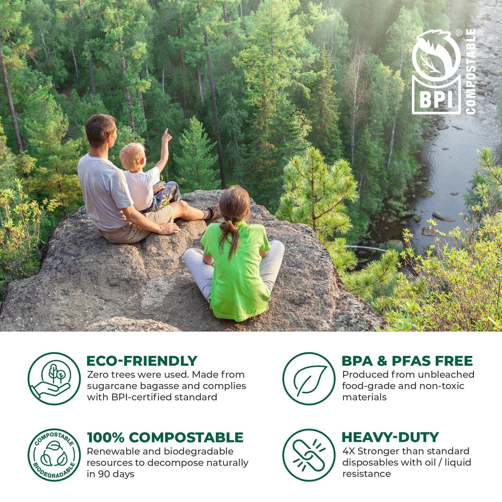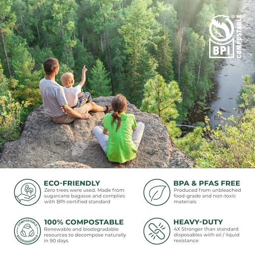 - Sturdy Zero Tree Dinnerware - Our unique process uses a tested blend of Bamboo and Bagasse to create heavy duty disposable compostable to go containers you will enjoy! They give you that unmatched high quality feel while holding, scooping or cutting through tough foods. Zero Tree also means you don’t have to cut down one to provide elegantly disposable tableware. These plant-based to go containers are packaged in their own box to avoid unnecessary shipping and storage damage.