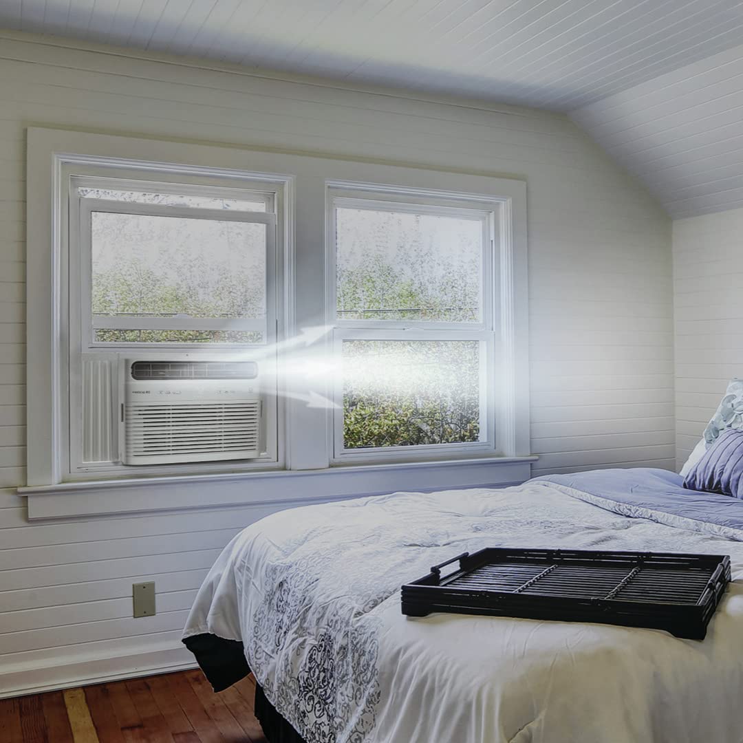 Details: The Frigidaire 6,000 BTU window air conditioner keeps your room cool and comfortable with optimum circulation thanks to multi-directional airflow and three fan speeds. Easily install this air conditioner; this unit distributes the weight into two pieces using a slide-out chassis. Capture dust from the air and keep your air conditioner working efficiently with our easy-to-clean washable filter.