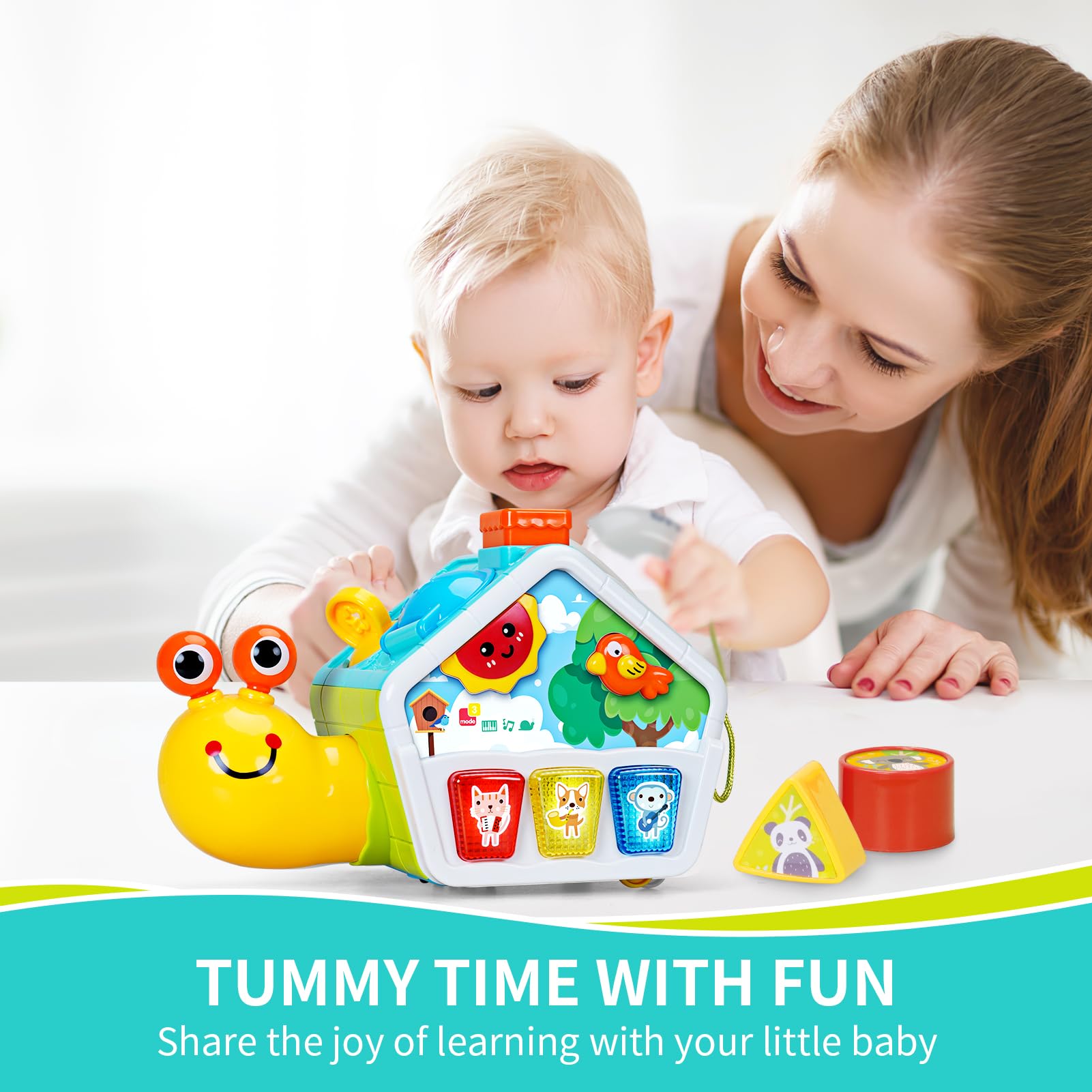 - Early Developmental Montessori Toy: This snail toy serves as a great baby activity cube, featuring motorized movement with obstacle avoidance to encourage baby to crawl. With 5 sides of cognitive activities, it helps children learn shapes, recognize colors and develop hand-eye coordination. Ideal Educational baby toys for 1 year old boy and girl.