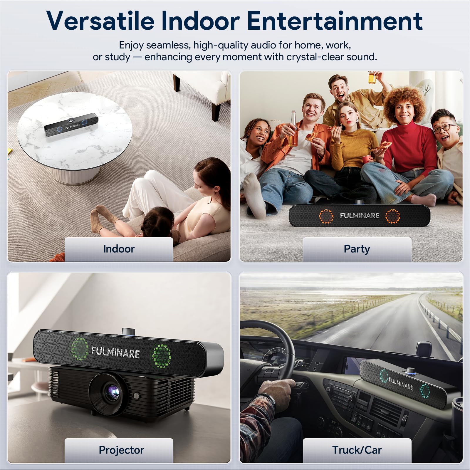 - Versatile Usage for Any Occasion: The Bluetooth-compatible portable speaker is perfect for any setting. Use it at home in the living room, bedroom, or during small indoor parties to set the mood. It's also great for office use, connecting to projectors for meetings. For on-the-go, enjoy it in your car with AUX support, adding music to your road trips.