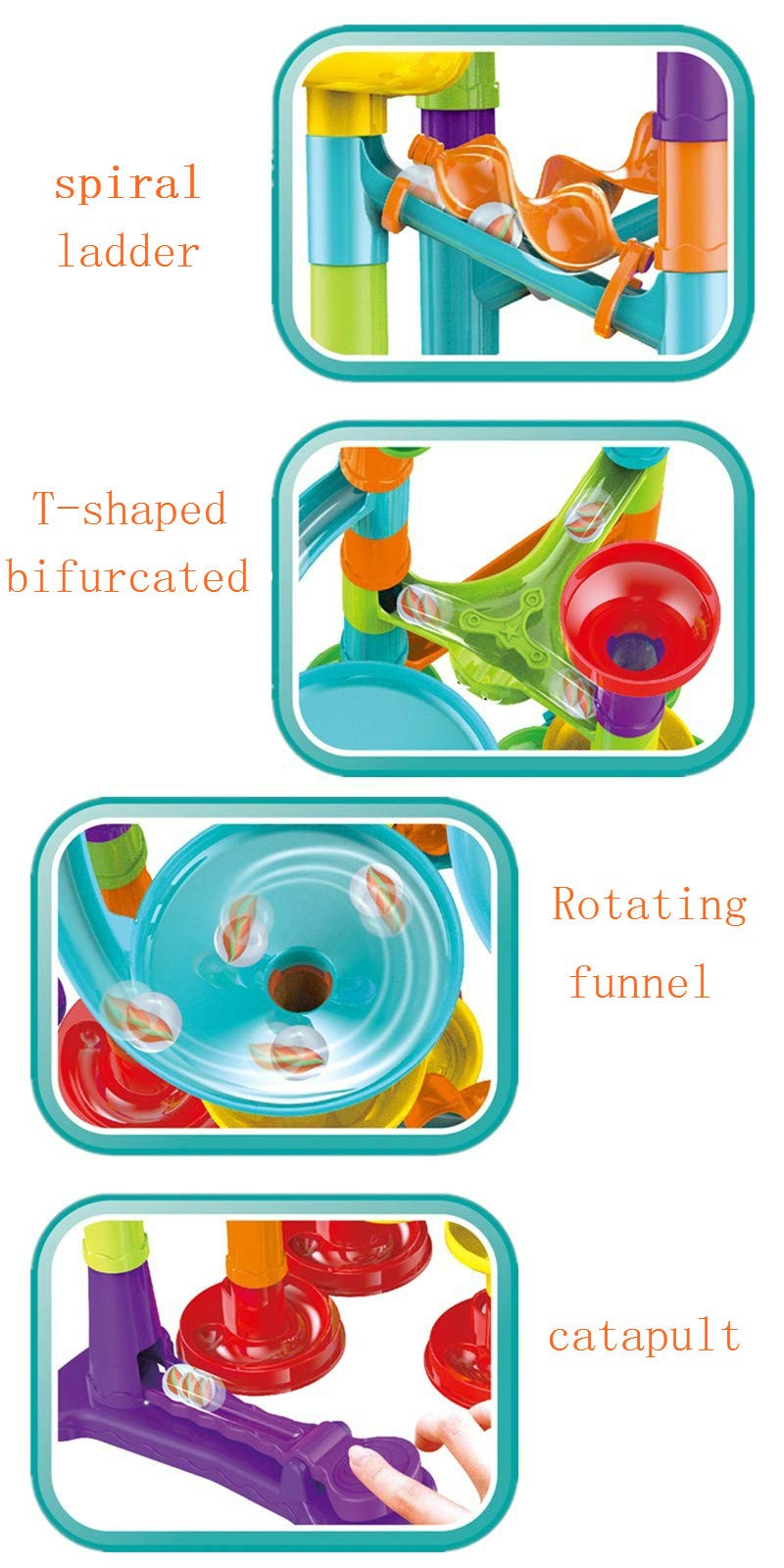 - 3: Build various tracks and see marbles go up, down, all around, and fast. Perfect marble game toy choice for birthday gift, children party favor, after-school fun, Christmas presents and all other holidays.