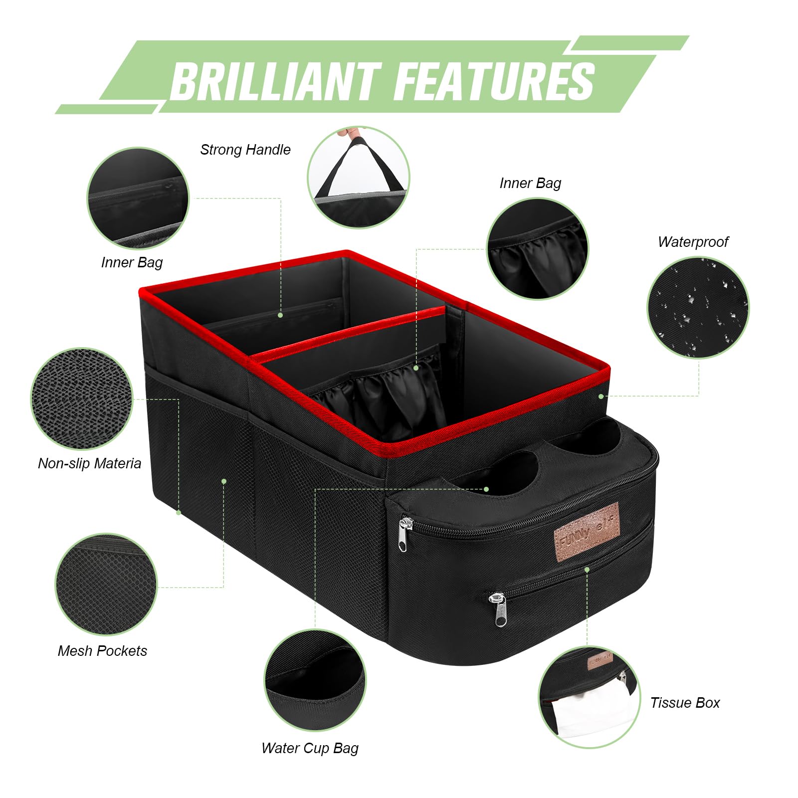 - DURABLE MATERIAL - FUNNy elf car seat organizer with cup holders is Made of premium Oxford cloth and thickened PVC board, which is durable and waterproof. Versatile usage, convenient and practical.