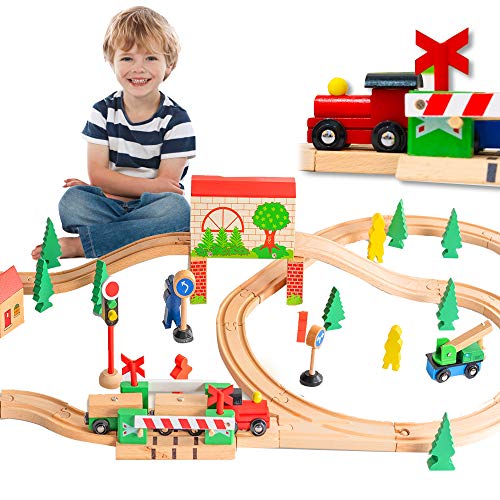 - Perfect gift: Are you looking for a gift that stimulates creativity and brings happiness to your children? Our toy trains and wooden train tracks are great gifts. The train kit is easy to manufacture, has multiple functions and many interesting accessories. You or your children can put these toy trains on the table or on the floor. This gift is perfect for Thanksgiving, Christmas, Holiday and birthdays.