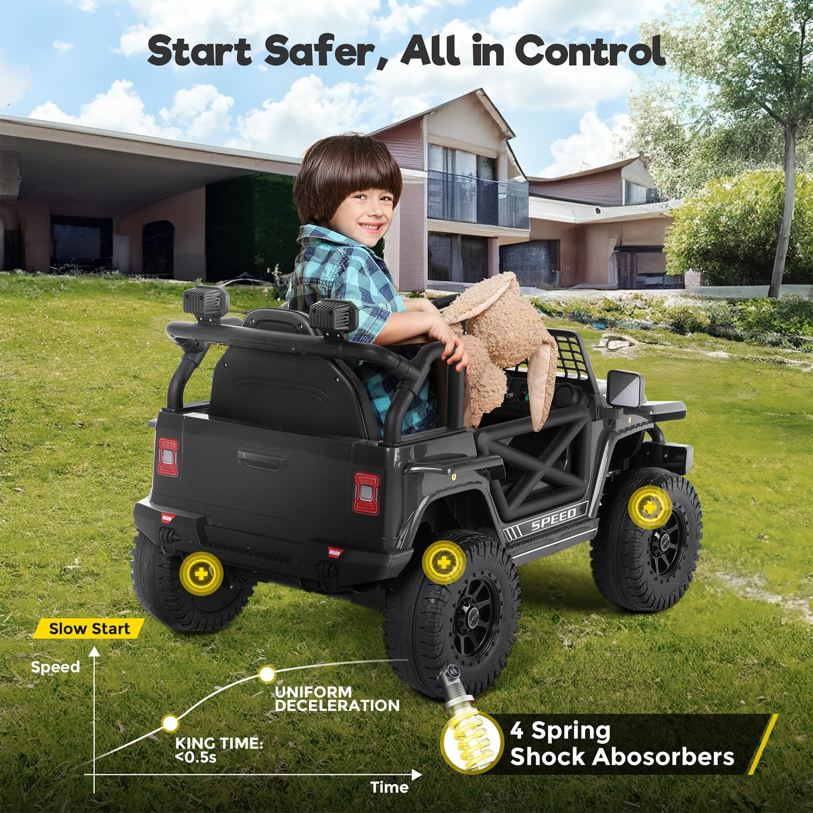 - Certified Safe & Kid-Friendly Design: CPSC and ASTM certified for rigorous safety standards. This car for kids with parent remote features a sturdy frame, spring suspension, adjustable seatbelt, soft start system, non-slip wheels, and a spacious 15-inch wide seat. Designed to protect your kids and keep them safe and comfortable on the ride!