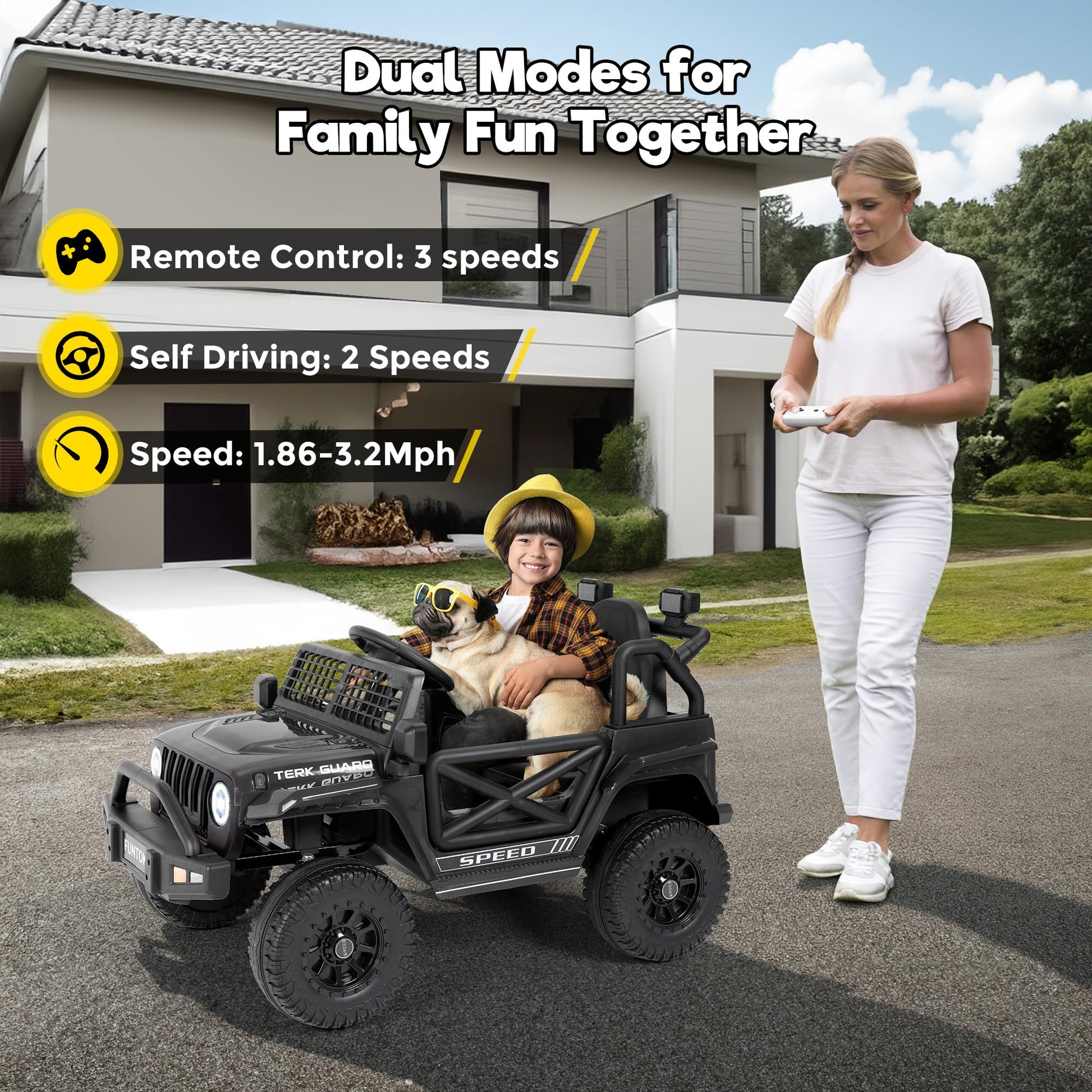 - Accompany Your Kids On Their Adventures: You can use the included 2.4GHz remote control to join in your kid's fun and guide them through the adventure, the remote has a remote STOP function to keep them safe. Kids can also control the steering wheel and pedals to drive the electric cars for kids independently, thus developing coordination and hands-on skills