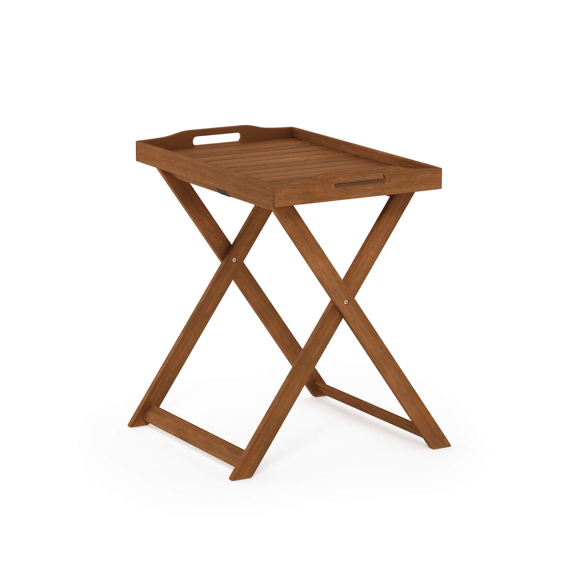 Details: Tioman Outdoor Series brings relaxed lifestyle from tropical islands to your backyard. This series include armchairs, bench, coffee table, footstool and flower boxes. You can complete the look with a whole set, or simply pick one or two to add to your existing settings. Be one with nature whether you enjoy a cup of coffee, reading a book or just simply enjoying the sunset. Manufactured from Malaysian dark red Meranti wood treated with teak oil, Tioman Outdoor Hardwood Tray Table is strong and sturdy. It is perfect for tea and snacks as it comes with a removable tray to carry your cups and kettle from the kitchen. The assembly is very simple, all the hardware and illustrated instruction manual are provided. It is recommended to treat with suitable wood oil at least once a year to maintain the original appearance. Please follow the care instruction that comes in the package for details. Pictures are for illustration purpose. All decor items are not included in this offer.
