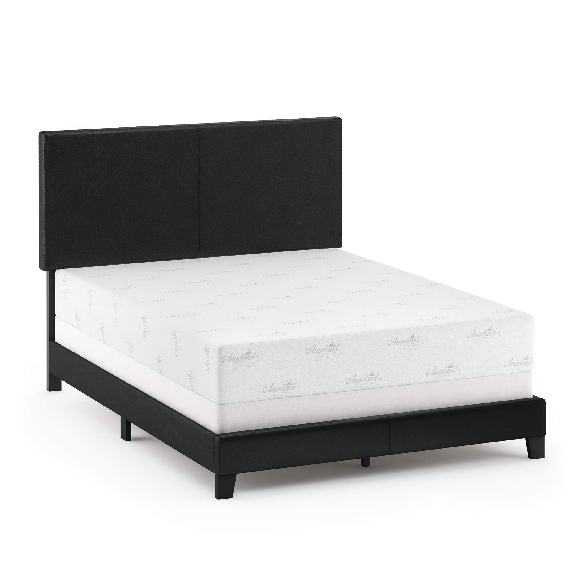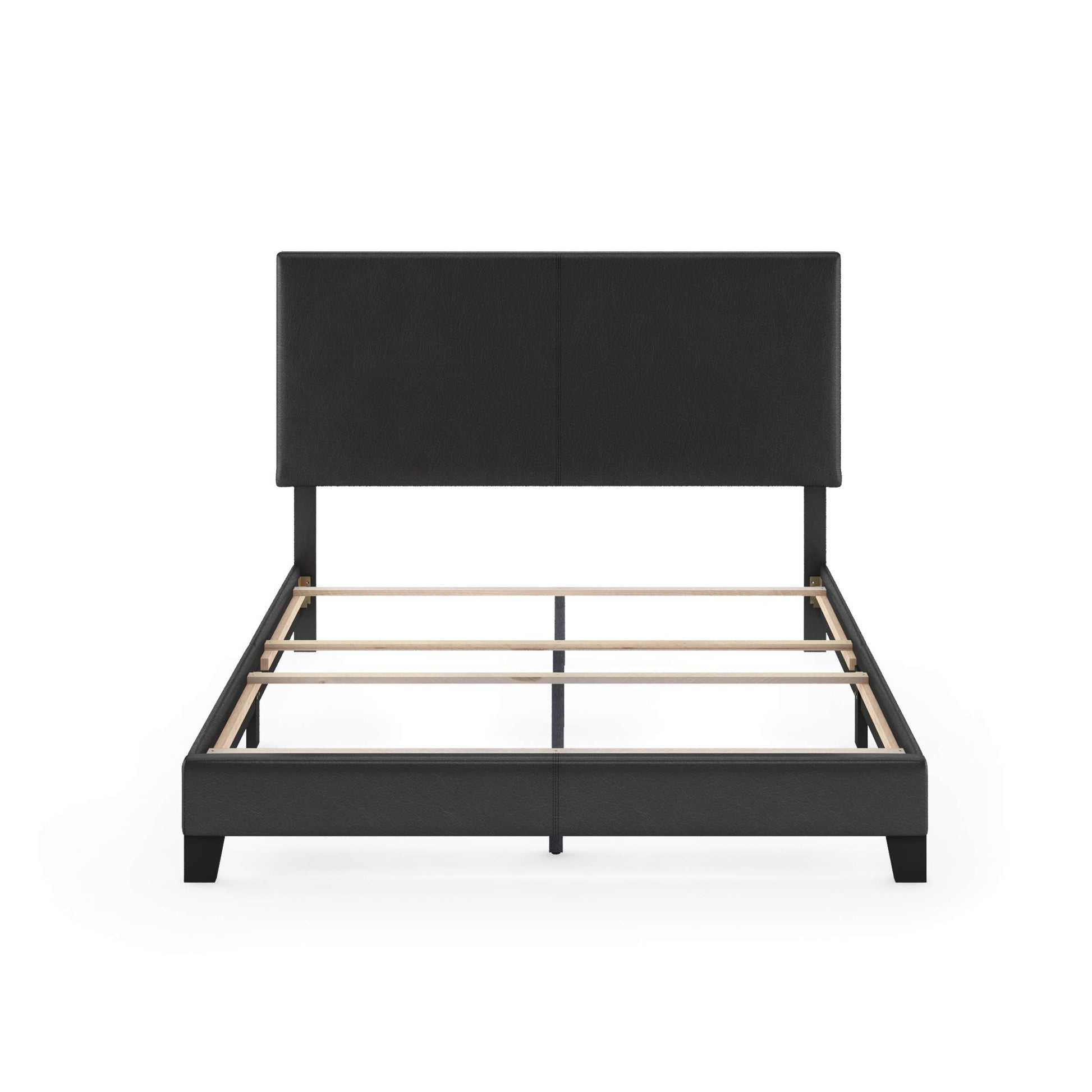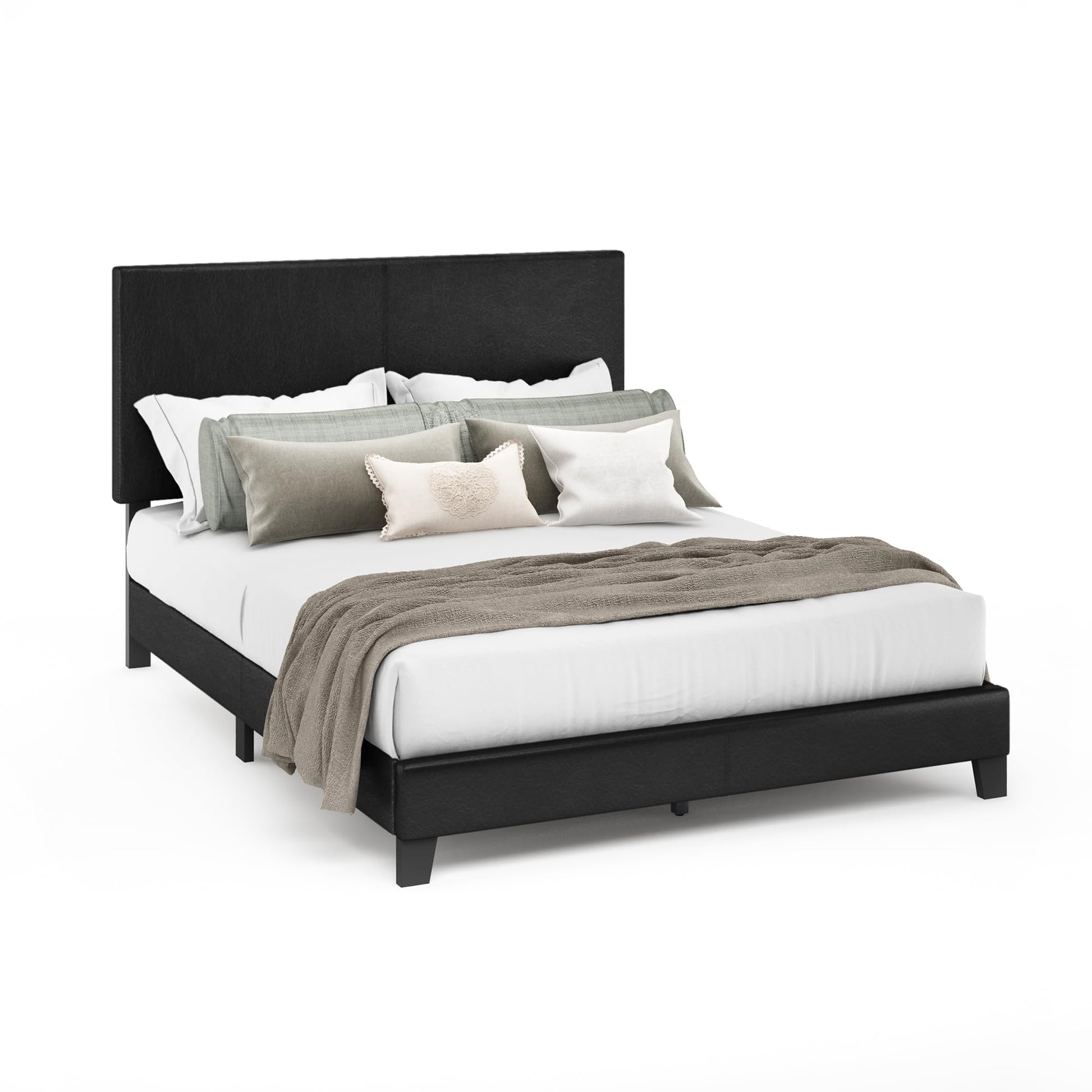 FURINNO Pessac PU Leather Upholstered Platform, Queen, Black