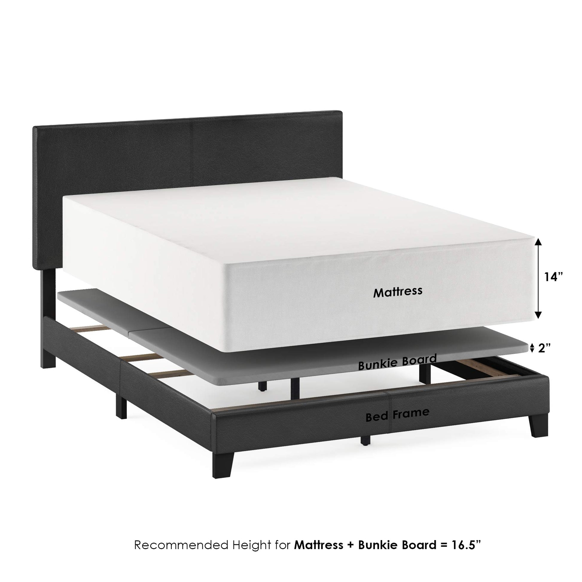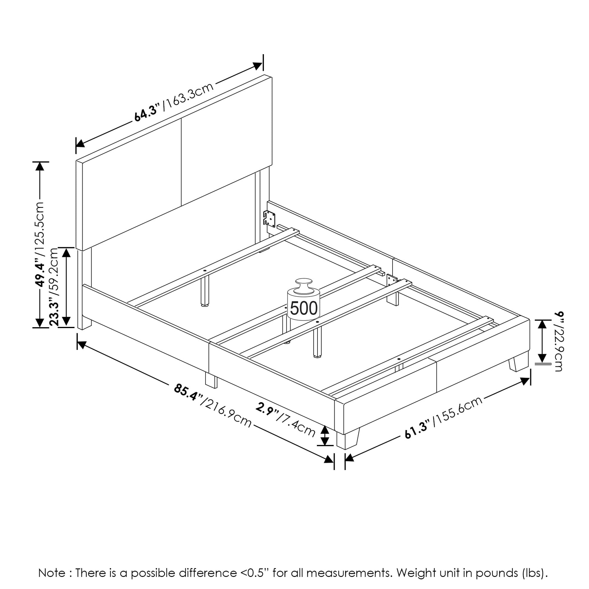 Details: Pessac collection comprises leather bed frame that brings about the combination of style and comfort. The generously foam-filled headboard with PU leather upholstery bed frame fits the characteristics of a glamourous and compelling centerpiece. This modern looking platform bed comes in different sizes and offers two striking colors. The strong and durable frame can hold up to a maximum weight of 600 lbs for a King size. Featuring smart design that holds all the parts in the back of the headboard, the bed frame comes in a fitted box that does not takes up much space. This helps in saving space and also keeping the parts safe. Assembly is easy with all the parts and assembly manual provided. Box springs or bunkie boards are required for the platform bed to function. These are not provided nor included in the set. Care instructions: wipe clean with clean damped cloth and this bed will look new for years to come. Avoid using harsh chemicals. Pictures are for illustration purpose. All decor items are not included in this offer.