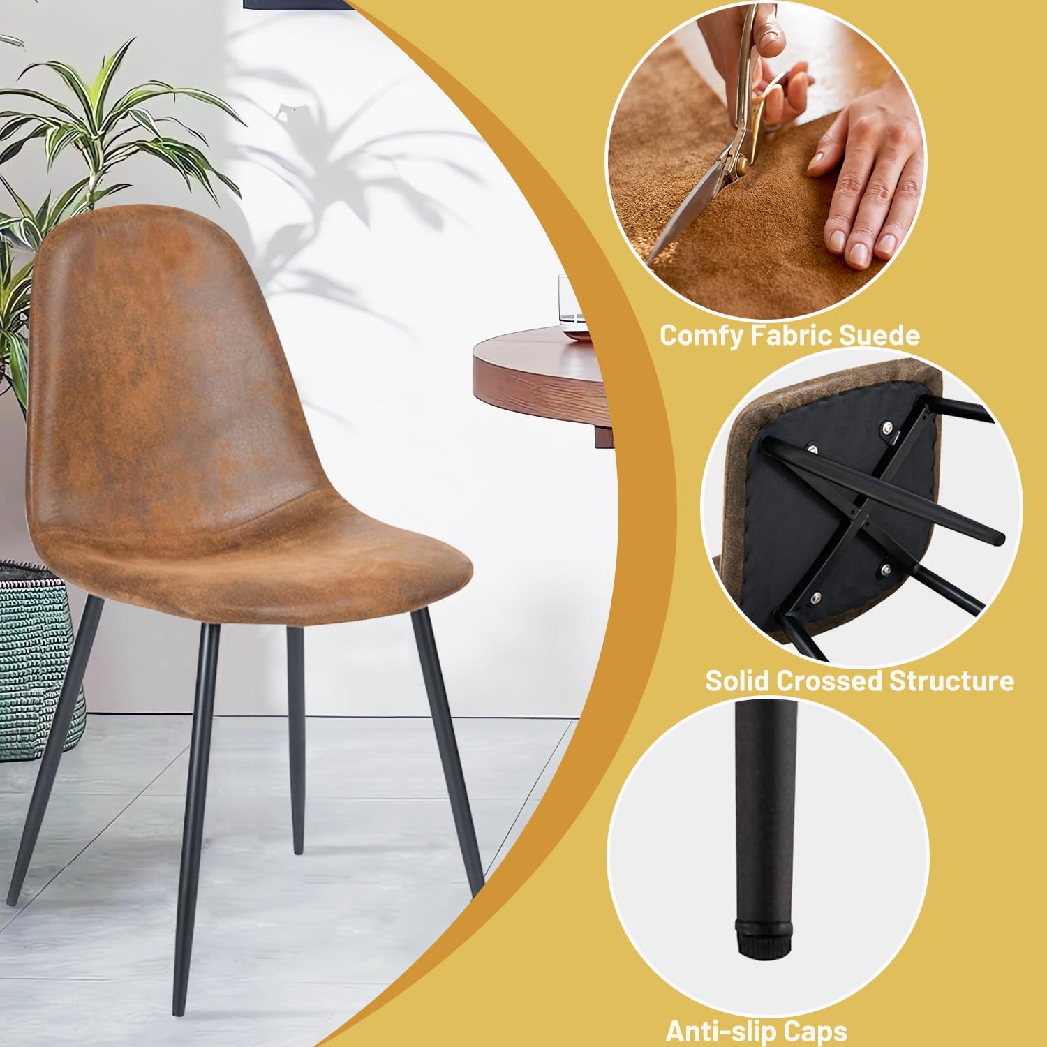 FurnitureR Dining Chairs Set of 4, Comfy Fabric Suede Side Seating Kitchen Chairs Easy Assembly for Living Room Bedroom Guest Room, Brown