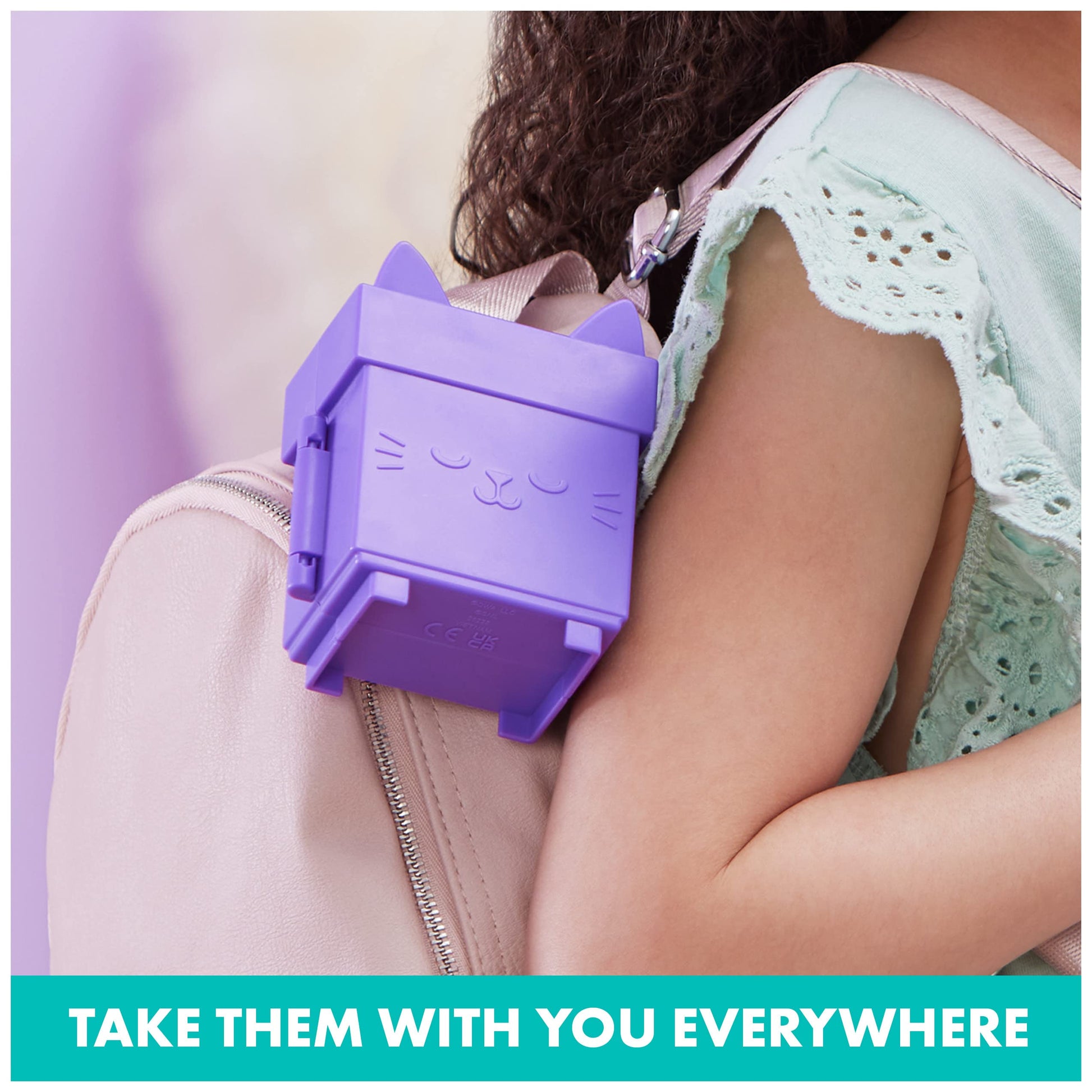 Details: Enjoy pretend-play fun on-the-go with the Gabby’s Dollhouse Clip-On Playsets! Featuring Gabby’s Cat-tastic friends, Cakey, Baby Box and MerCat, this portable playset bundle comes with mini dollhouse rooms and plastic backpack clips that allow you to take your mini-playsets with you anywhere! Fans of the Gabby’s Dollhouse series will love hanging these mini playset from their bags, or backpacks, so they can take their exciting dollhouse adventures with them wherever they go! Take your mini playsets with you in the car, on a train, or even an airplane and once you’re seated, pop open the playset to reveal 3 mini dollhouse rooms, so you can relive your favorite scenes from the show! Enjoy pampering time in MerCat’s bathroom, have a snack in Cakey’s kitchen and create some really cute crafts in Baby Box’s room! Then, just like Gabby does at the beginning of each episode, unbox your dollhouse deliveries and discover the surprise accessories, a perfume bottle, a kitty-cake and some craft scissors, which you can use for your pretend play adventures! When playtime is over, put the kitties and their accessories into their respective playsets, snap them shut, then hang them onto your backpack until it’s time to play again! For one last surprise, scan the QR code inside the Dollhouse Delivery to unlock a special reward in the free Gabby’s Dollhouse App (available on iOS and Android). Gabbys Dollhouse stuffed animals, dolls, toy figures and playsets are the perfect toys for girls and boys that love using their imagination to create their own dollhouse world, so bring home Gabby’s mini clip-on playsets today!