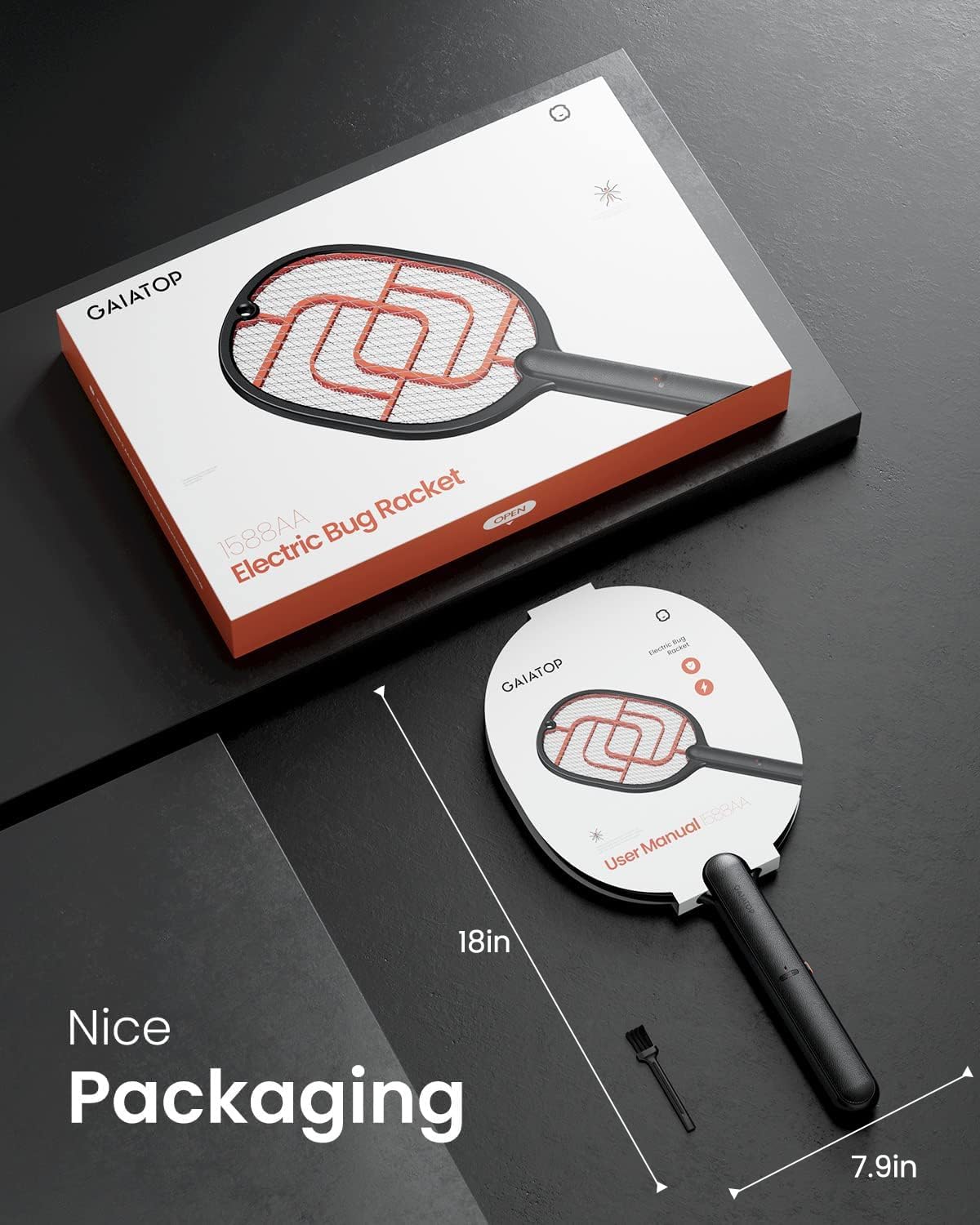 - 3800V Handheld Pest Control: Gaiatop upgraded encrypted aluminum mesh effectively targets fruit flies, mosquitoes, gnats, bees and other pests; Delivering 3800 volts of power, small insects will be killed in as little as 1 second