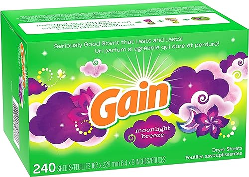 Gain Dryer Sheets Laundry Fabric Softener, Moonlight Breeze, 240 Count