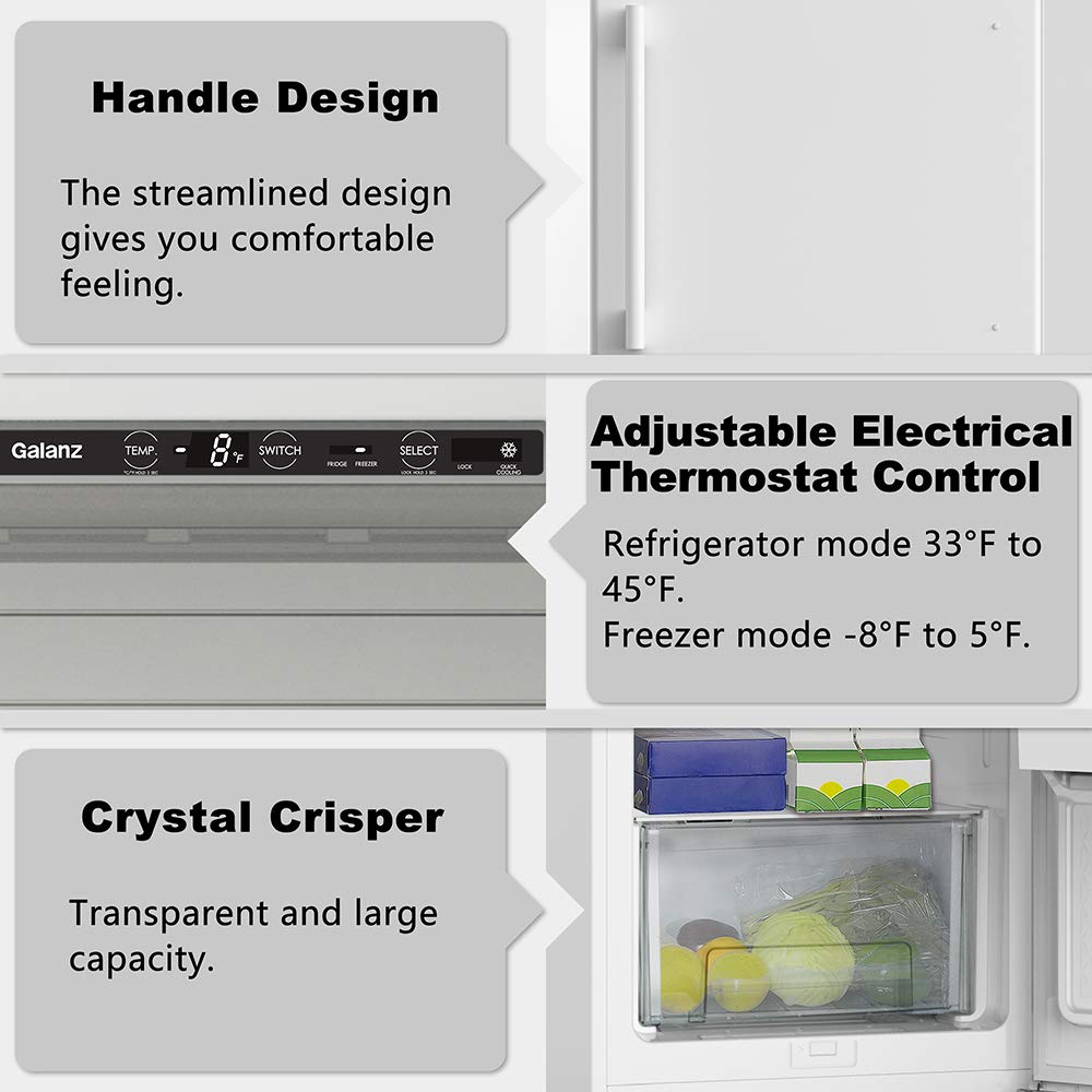 Details: This Galanz 11 Cu.Ft single door refrigerator with its White look will enrich your kitchen, rec room or home office with different styles, which can store snacks and keep beverages cool.