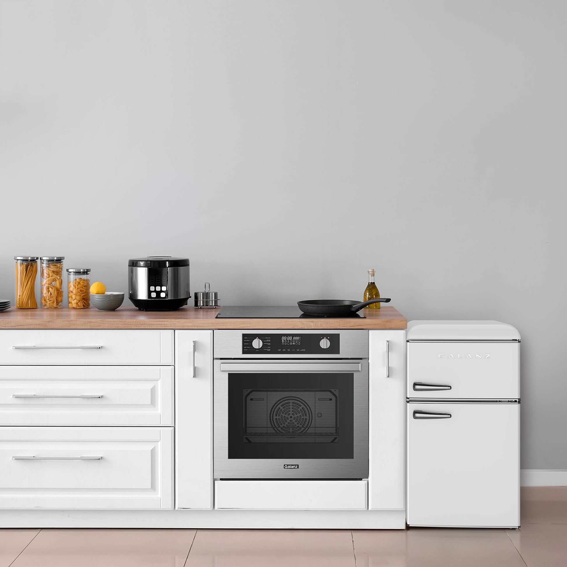 Galanz GLR31TWEER Retro Compact Refrigerator, Mini Fridge with Dual Doors, Adjustable Mechanical Thermostat with Freezer, White, 3.1 Cu FT