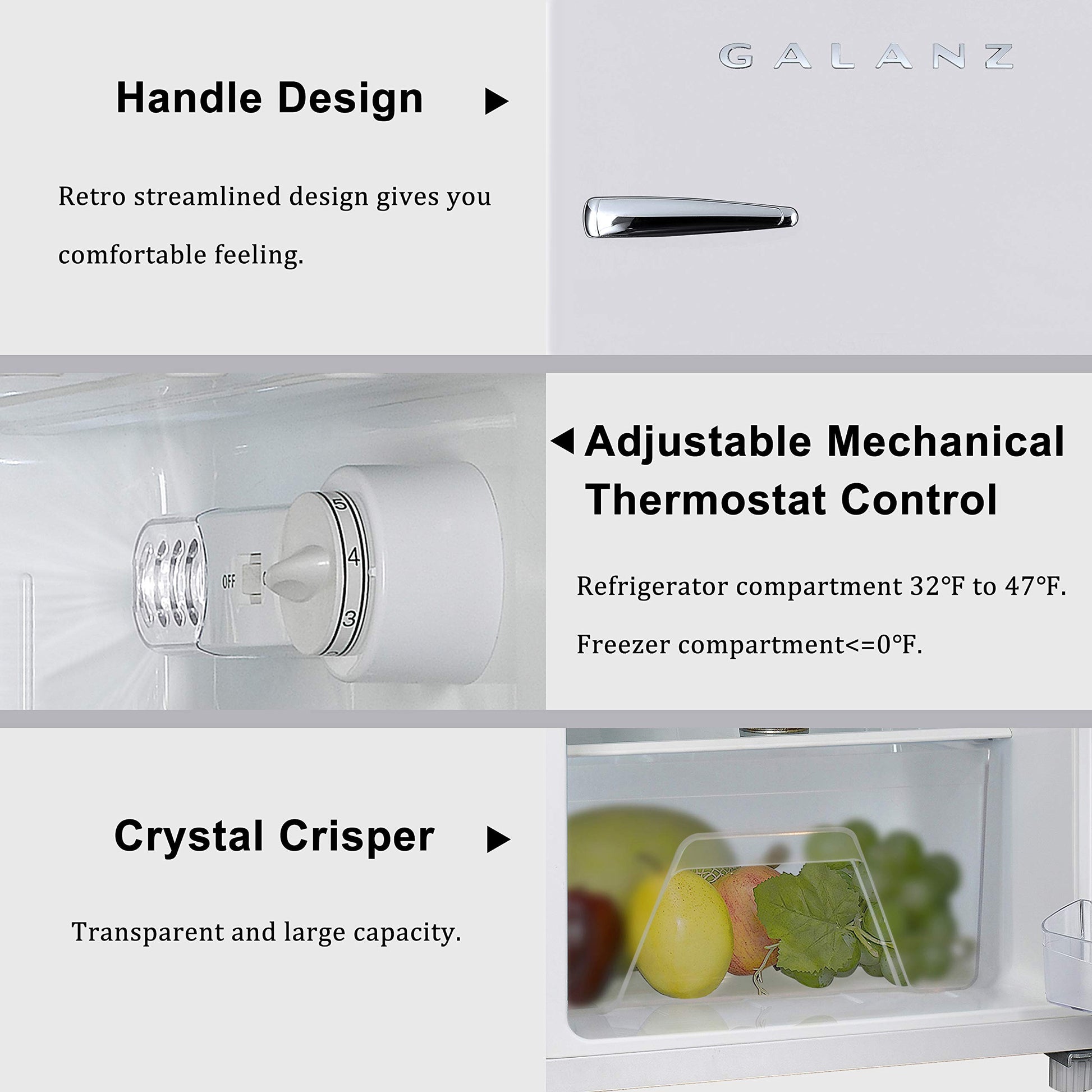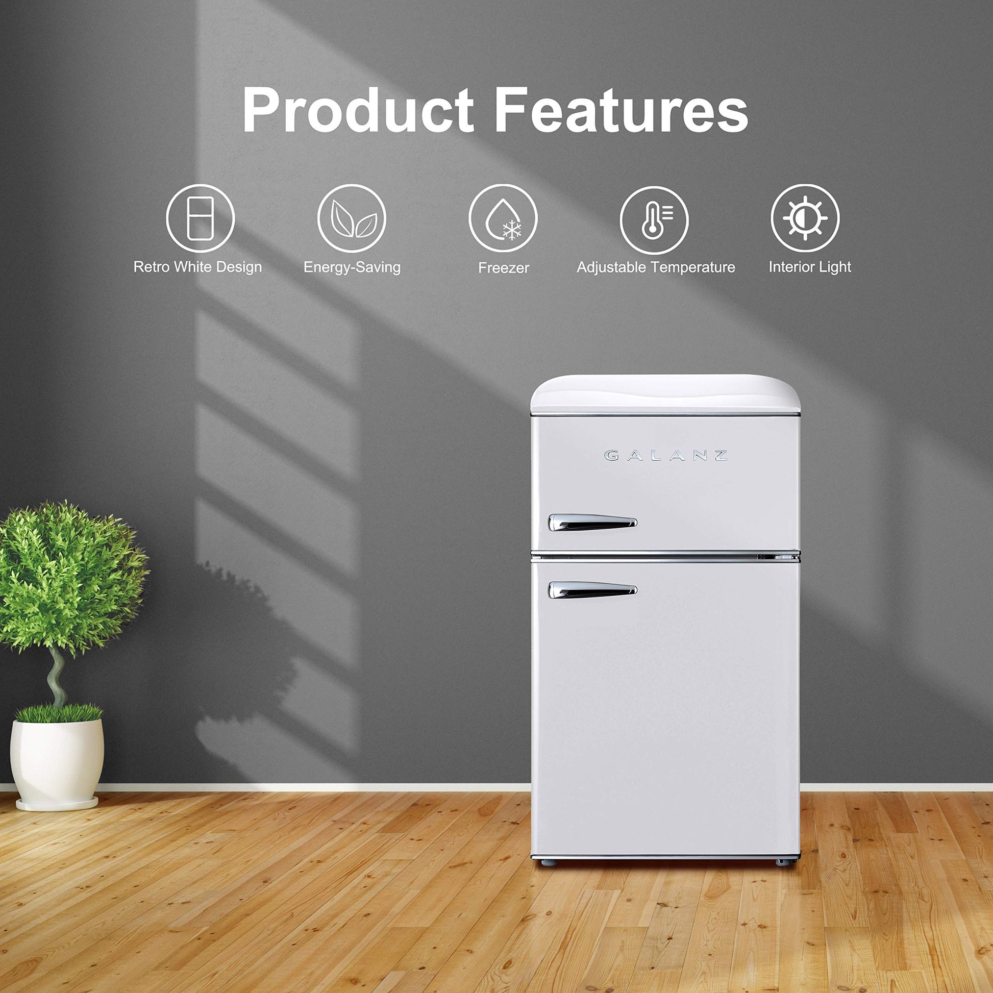 - Energy-Saving & Low-Noise: Galanz Retro Refrigerator Uses R600A High-Efficiency And Low-Energy Consumption Compressor, Cooling Foods Quickly With Lower Energy. Below 42 Db Running Noise Makes It A Quiet Mini Fridge For Bedroom, Dorm, Office, Appartment, Etc.