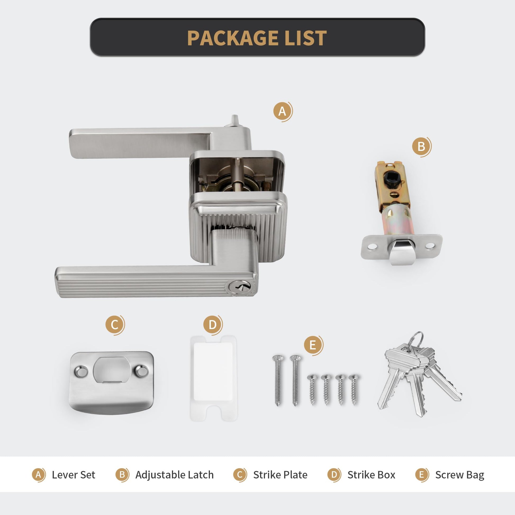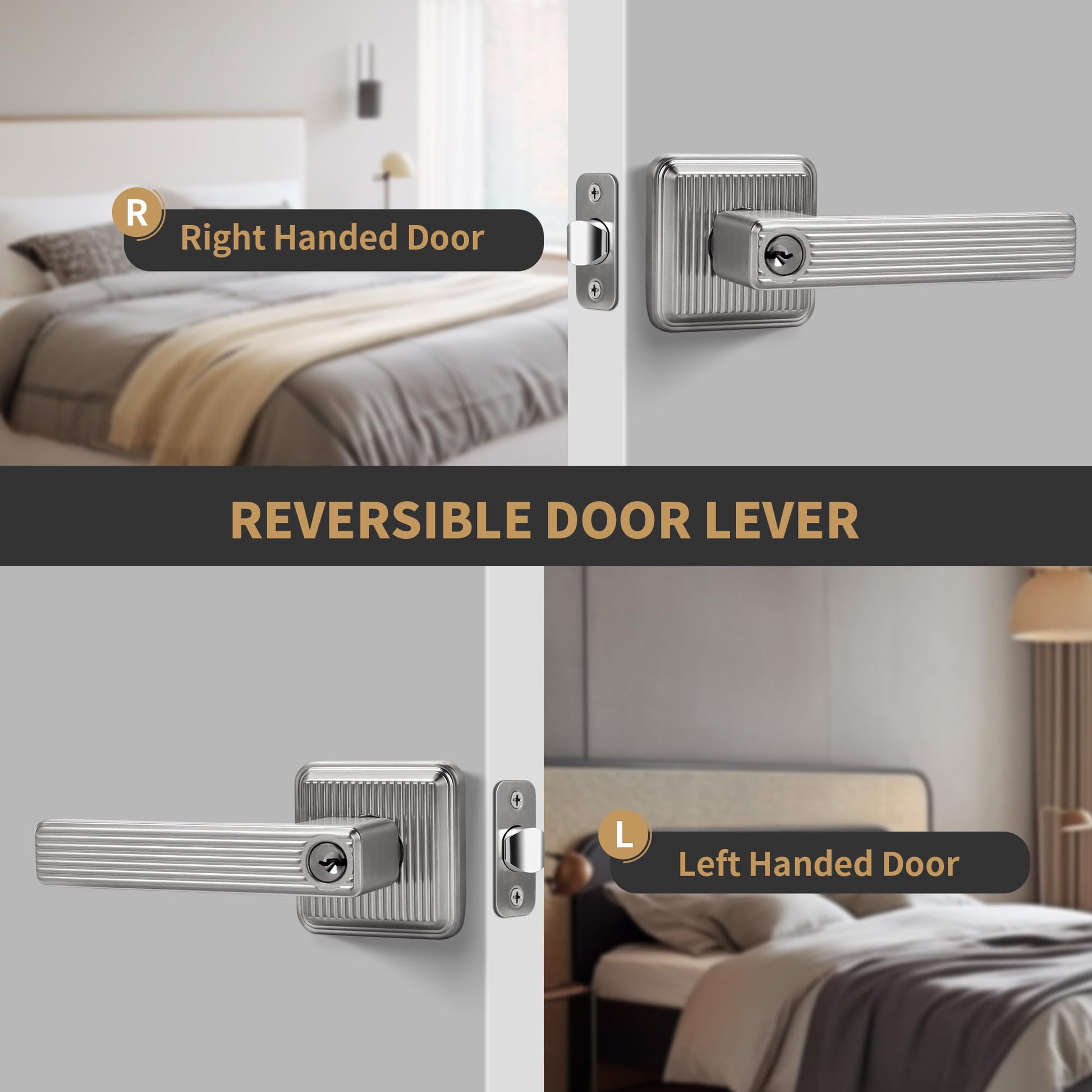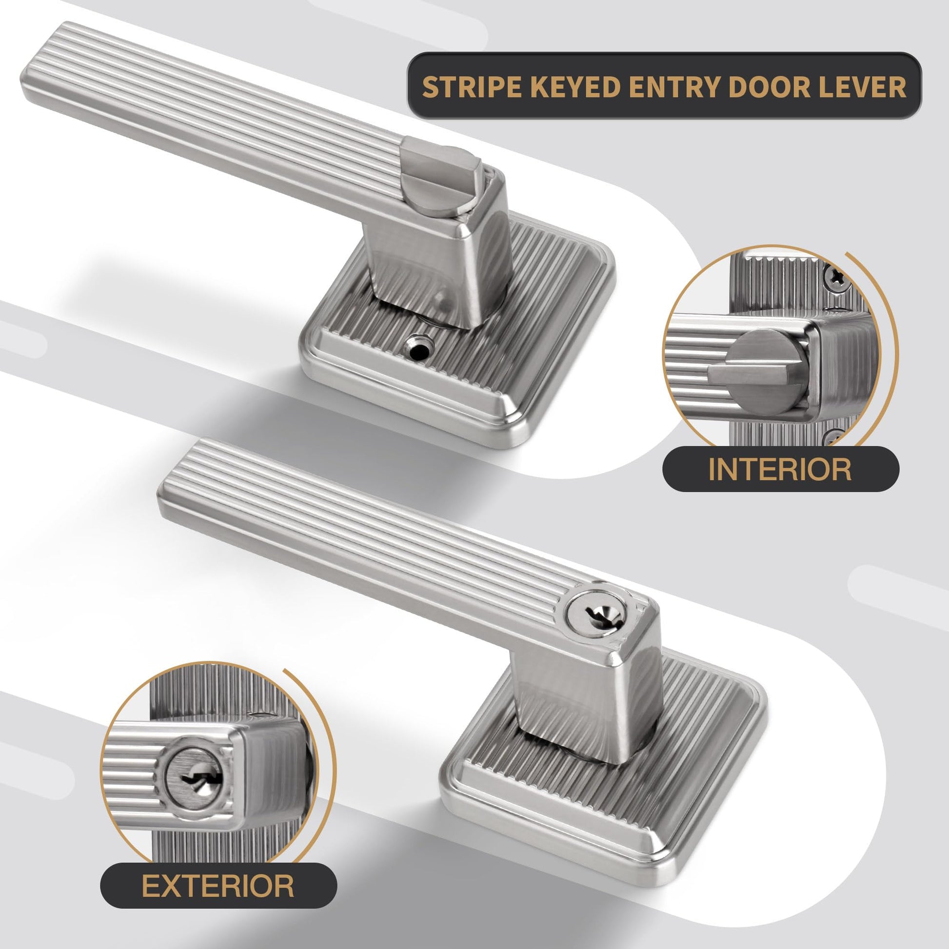 - {STRIPE STYLE DESIGN} The heavy duty stripe entrance door handle effortlessly matches various styles of room doors, and it features no protruding screws or rough edges. Satin nickel finish door lever is suit for enhancing the aesthetics of your home.