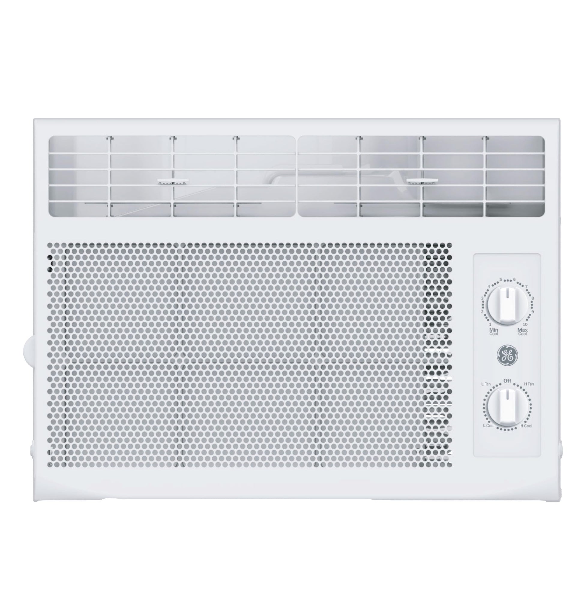 - GE 5000 BTU MECHANICAL WINDOW AIR CONDITIONER: Designed to efficiently cool rooms up to 150 sq ft; easy install kit included so you can start cooling right away.