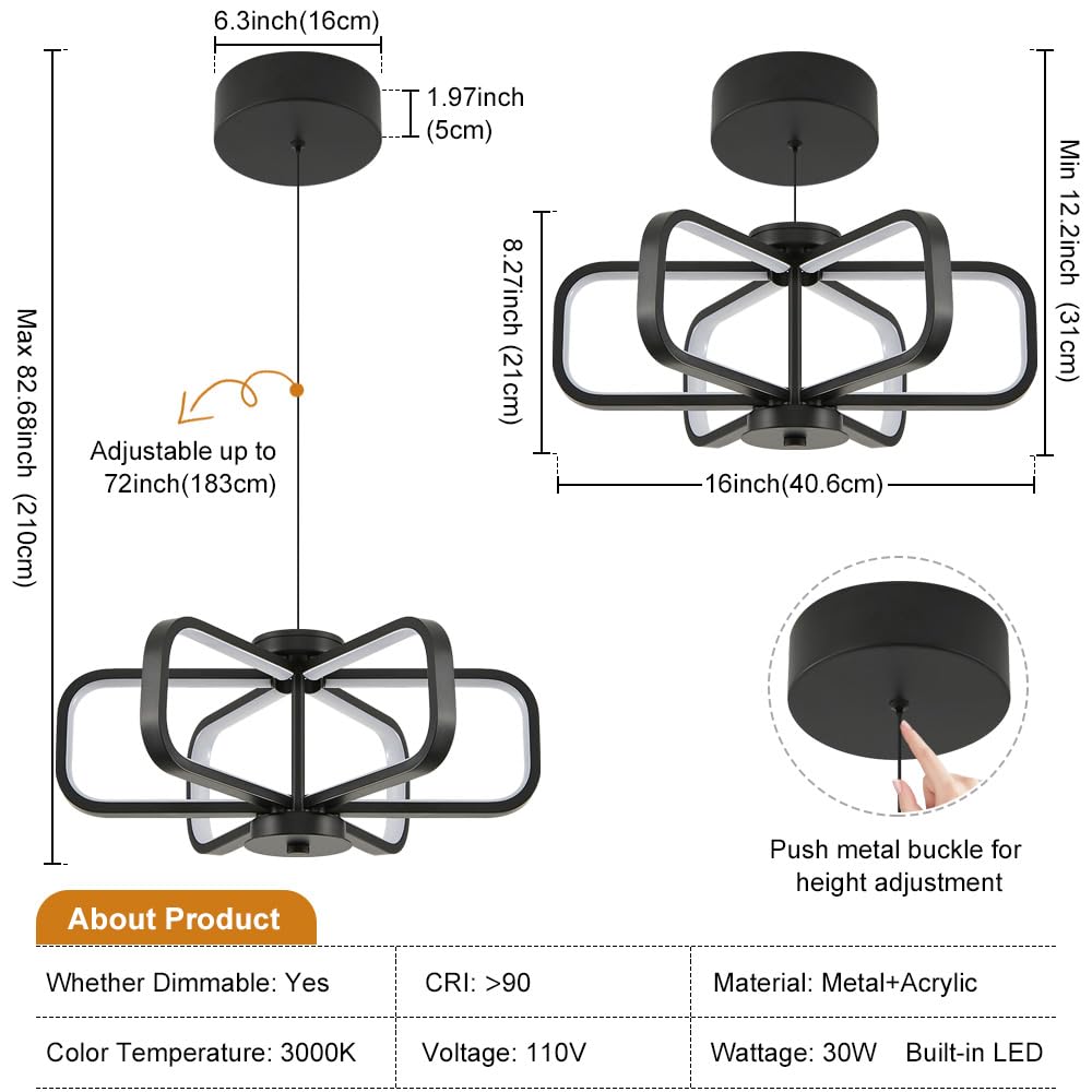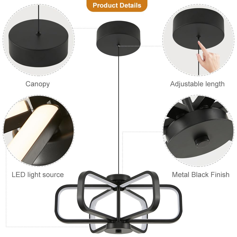- Modern Design: Designed in modern shape with 6 square rings, this black chandeliers has a modern, stylish simplicity and elegance. It’s an eye-catching modern chandeliers for dining room, kitchen, living room, foyer, hallway and office, etc